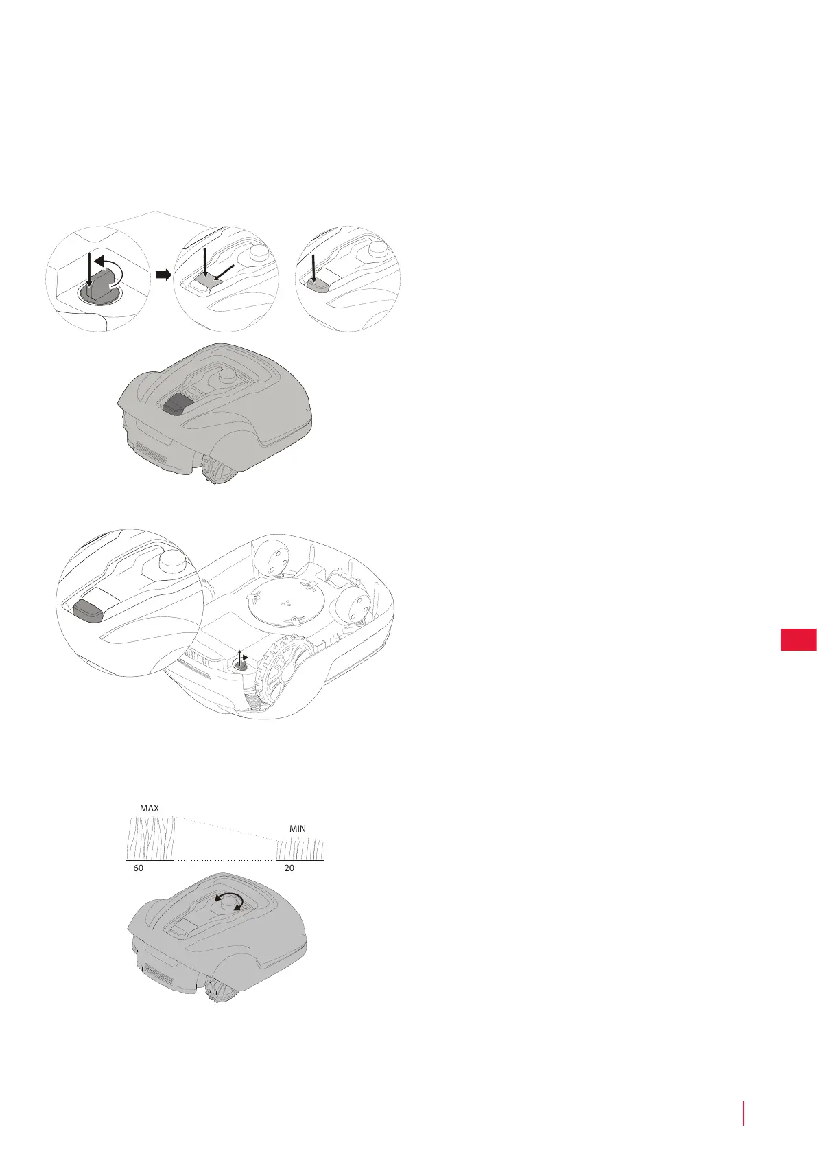 Plæneklipperens klippehøjde kan justeres mellem 20 mm og 60 mm.
