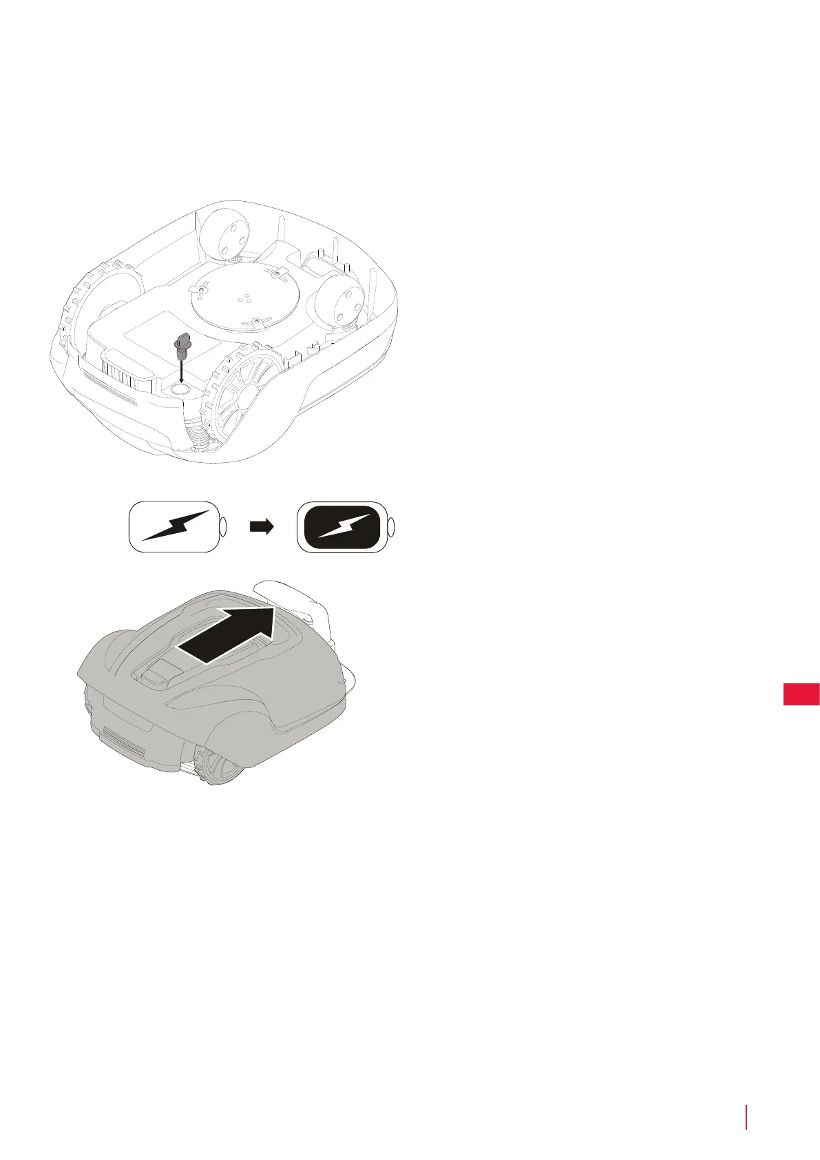 prowadzącego włożyć kosiarkę do stacji ładowania.