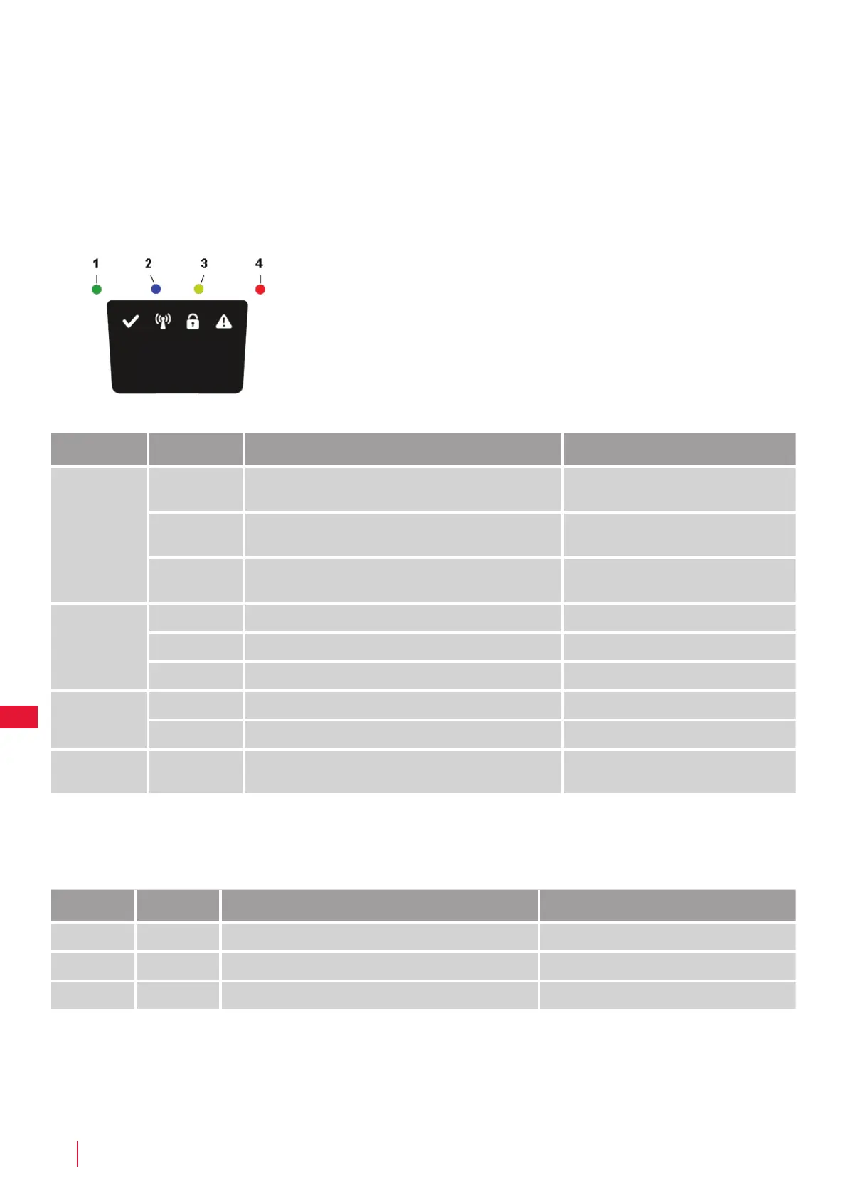 Czerwony Miga Usterka elektryczna stacji ładowania lub zasilacza Skontaktuj się z dystrybutorem.