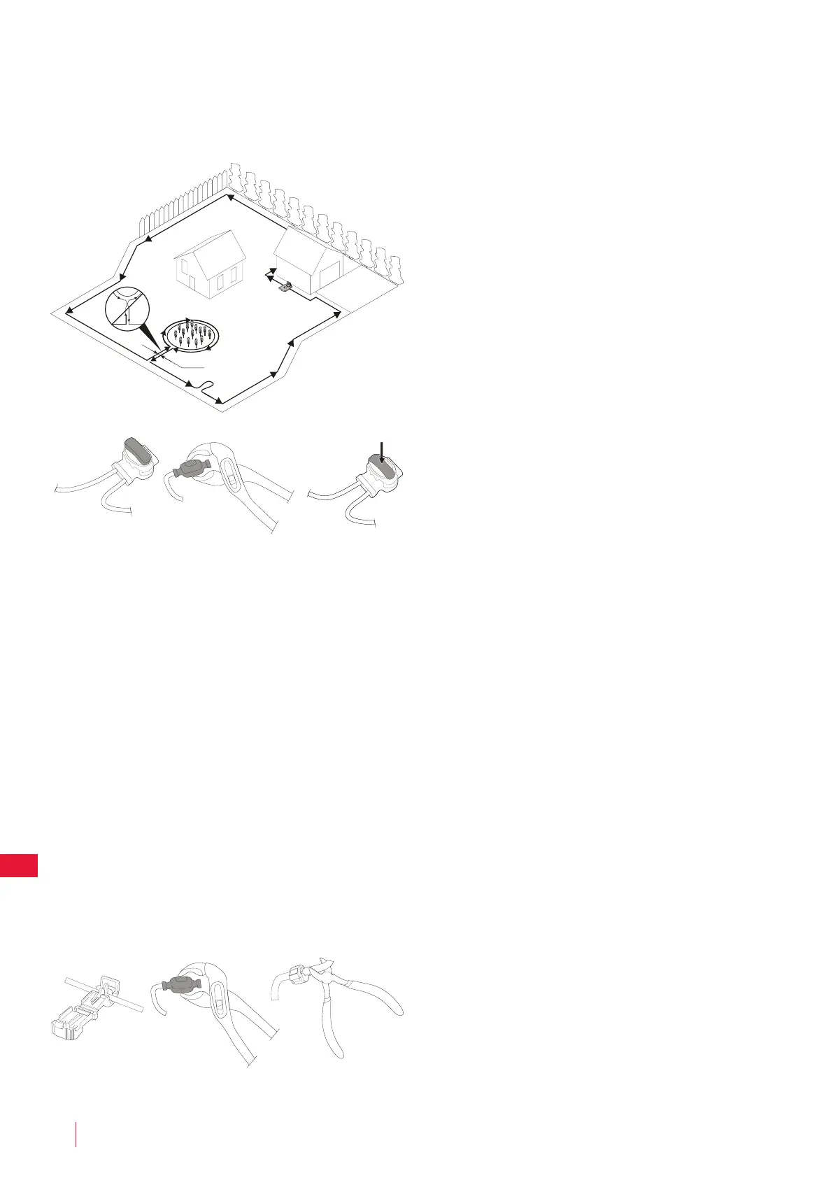 • Mejno žico položite na tla in jo pritrdite z zatiči tako, da bodo zatiči