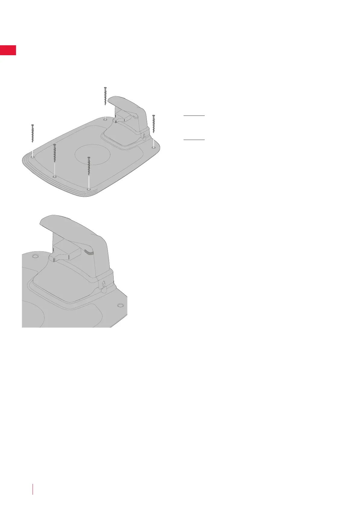 Ladestation. Zur Befestigung der Grundplatte am Boden dürfen nur die