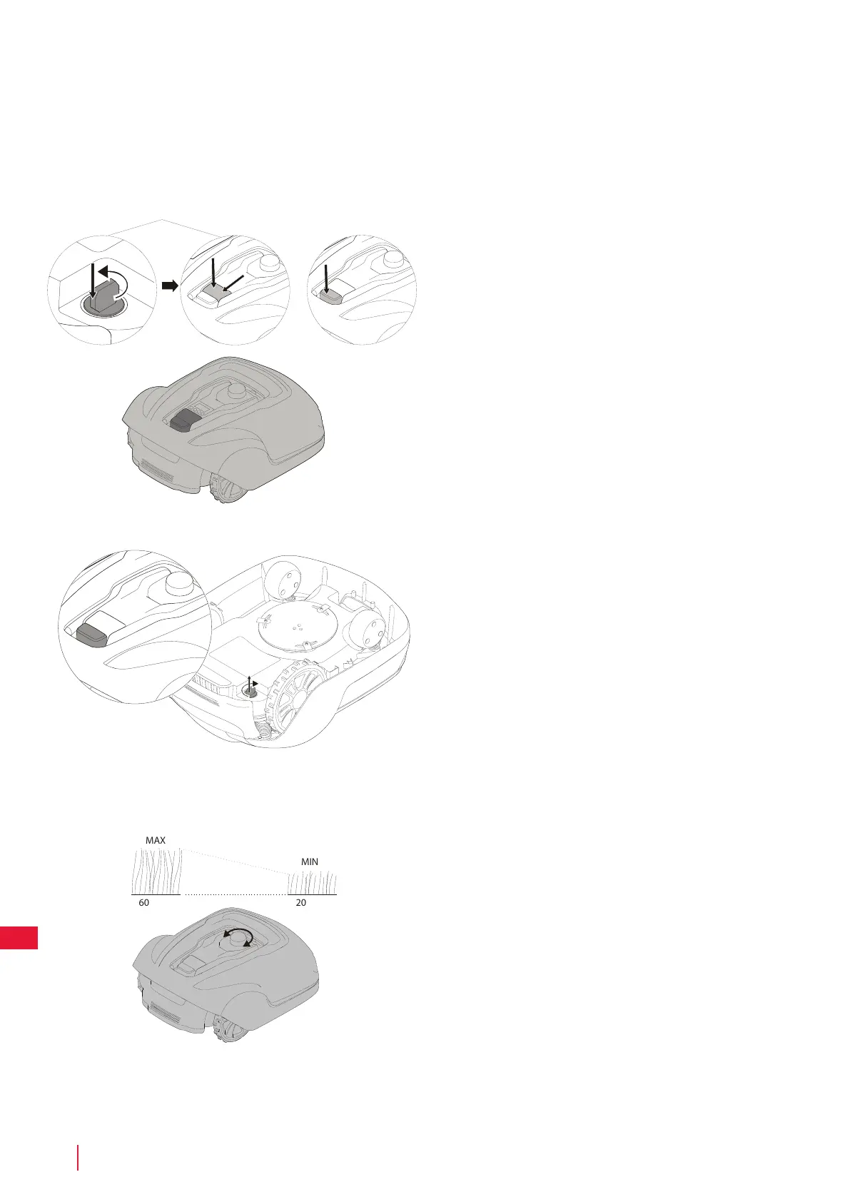 Okrenite gumb za namještanje visine košnje u željeni položaj. Odabrana