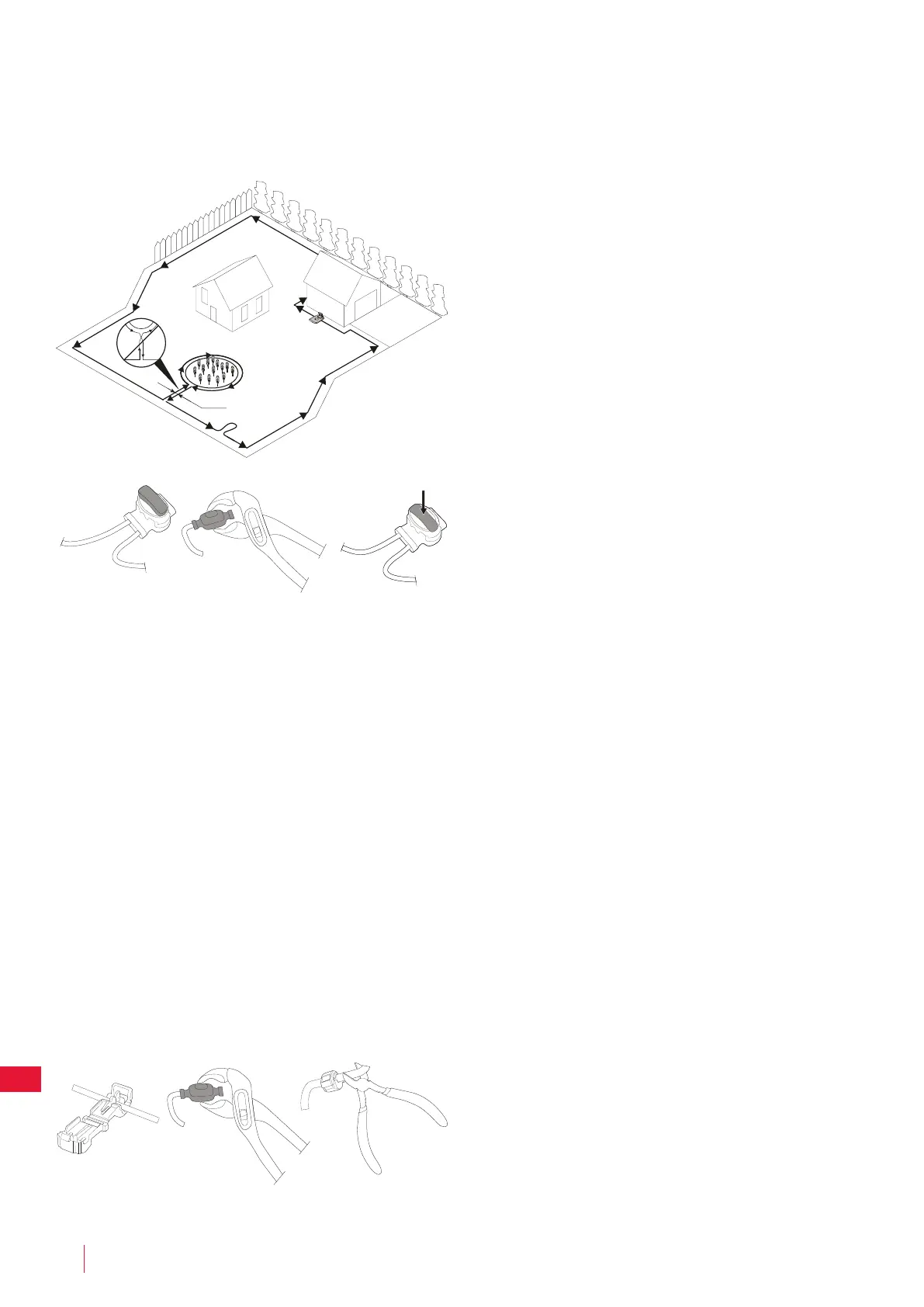 • Temesse a határolóhuzalt 1-20 cm-re a földbe.