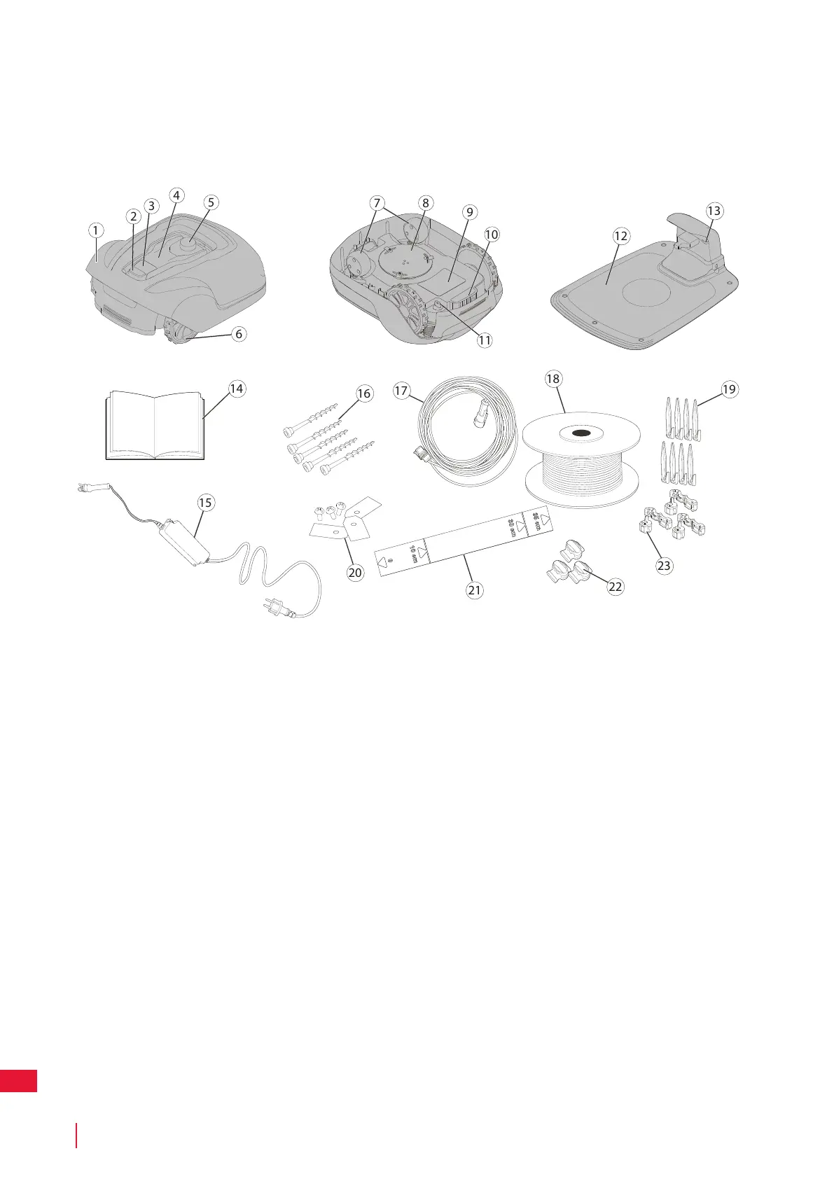 Разопаковайте косачката и монтажните материали. Уверете се, че всички части показани на фигура 1