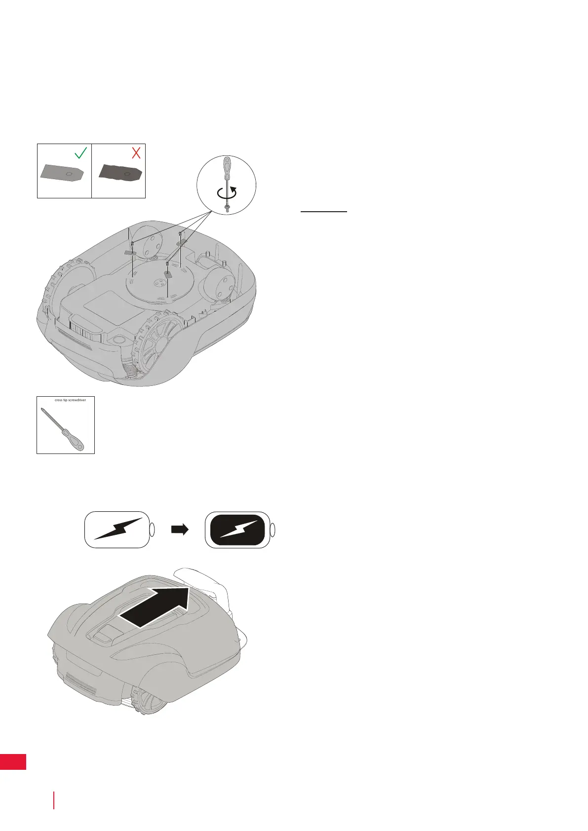 Завинтете новите ножове като използвате нови винтове.