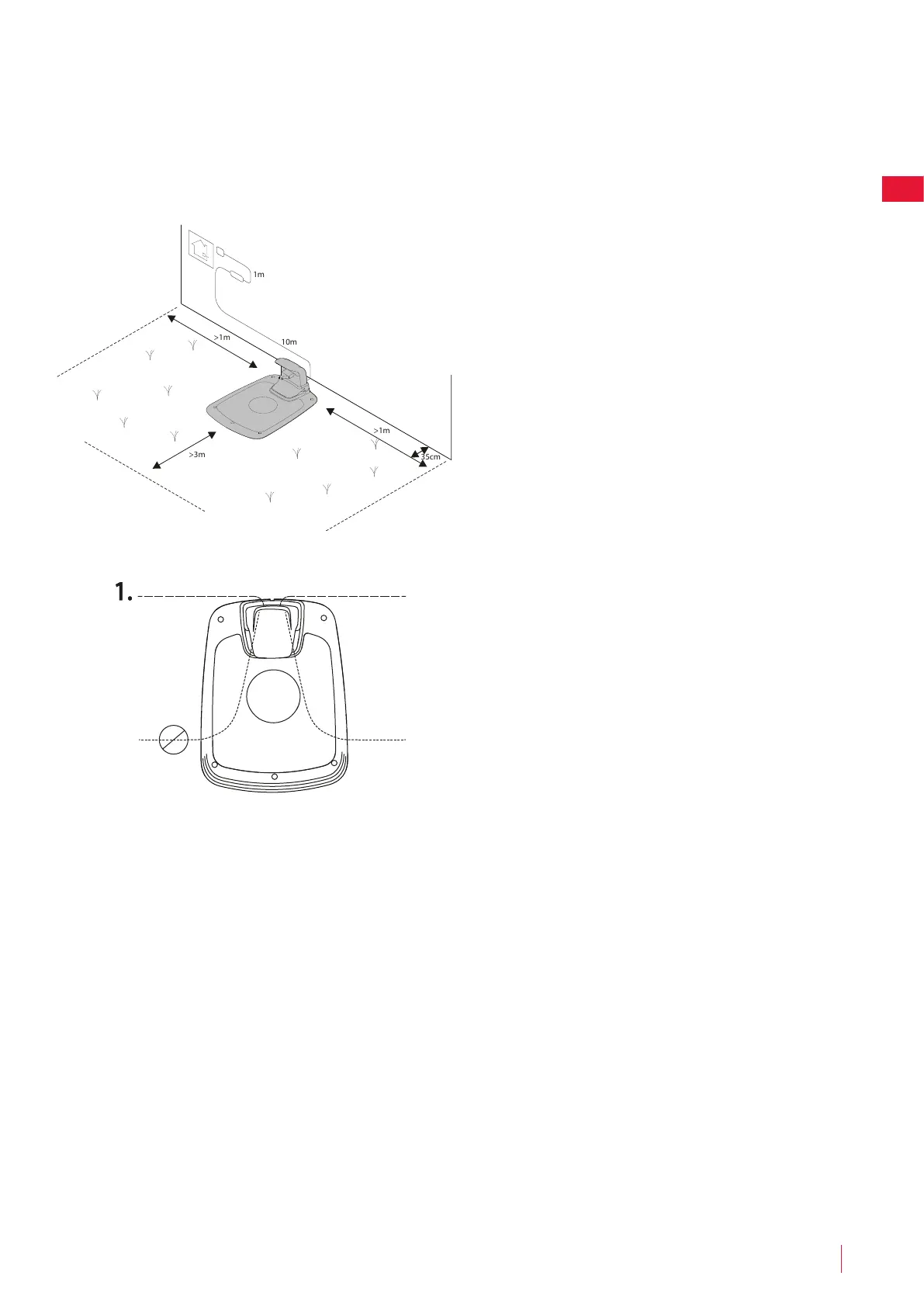 (El extremo delantero de la estación de carga no debe estar 5 cm