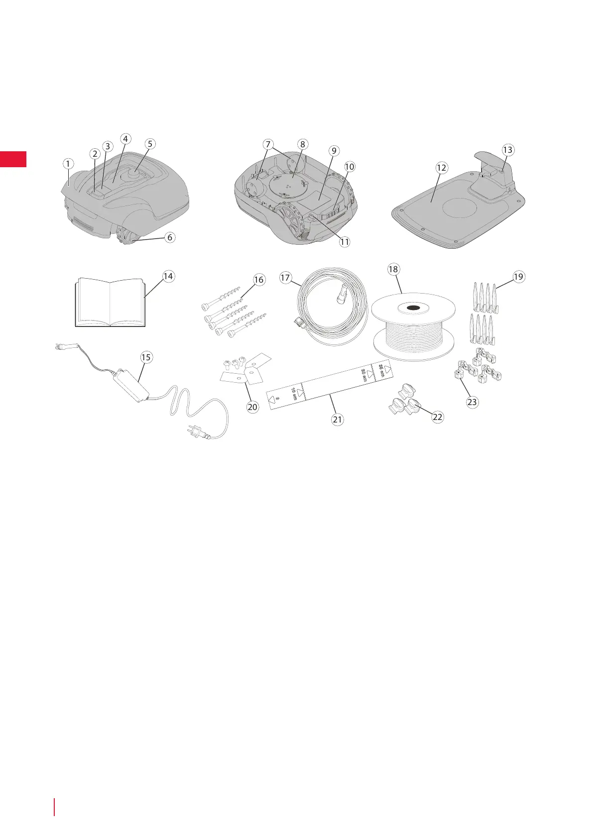 Tenere il dispositivo in un luogo sicuro perché contiene il codice di abbinamento unico per il tosaerba.