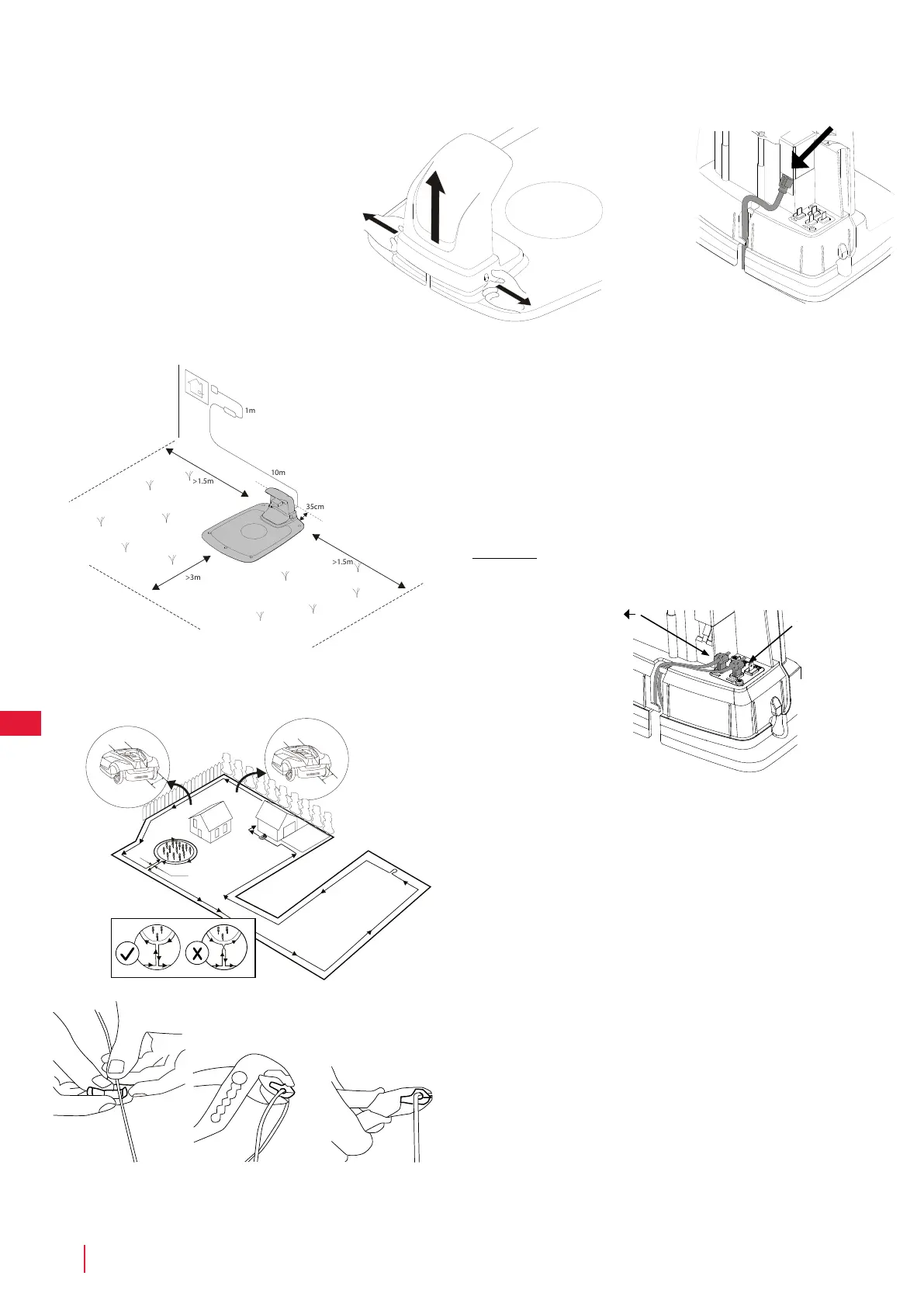 • Læg afgrænsningskablet på jorden, og sikr det med pløkke tæt på