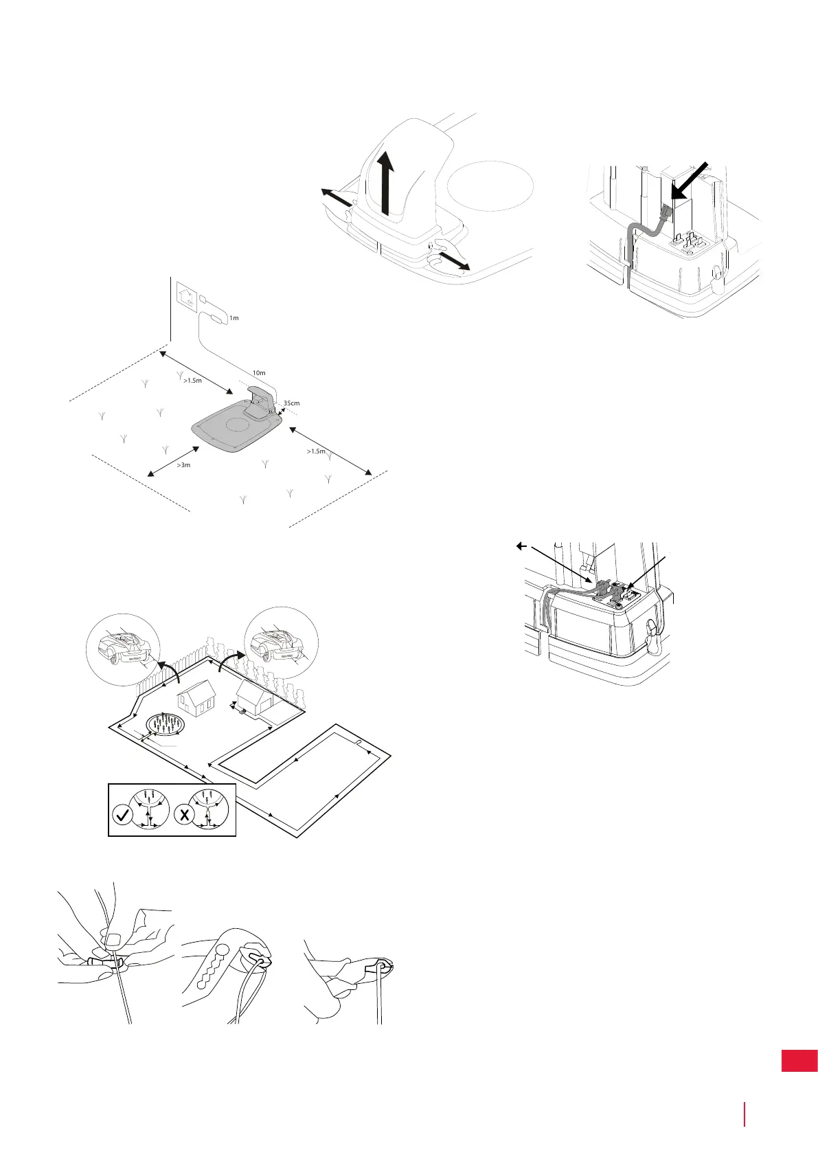 • Paklokite kontūro kabelį ant vejos ir nedideliu atstumu vienas nuo kito