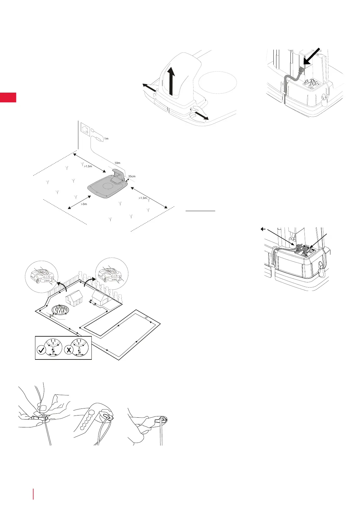 • Stendere il cavo perimetrale sul terreno e fissarlo con i pioli, l’uno