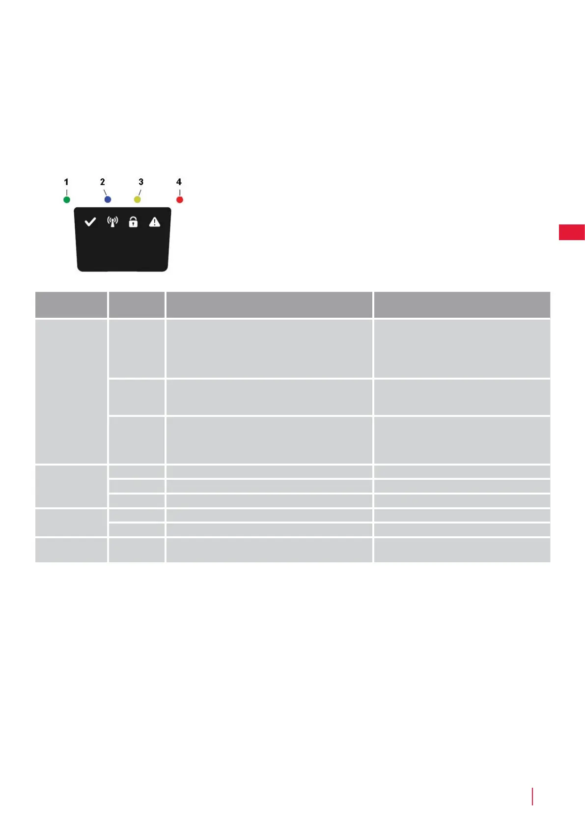4. Erro (vermelho) Intermitente Corta-relva parado com o erro Verifique o motivo do erro e reinicie-o