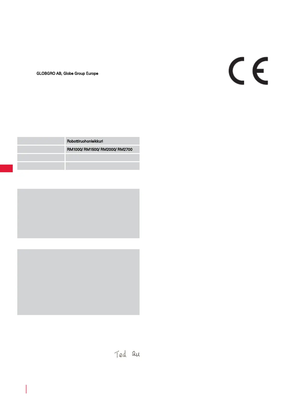 • Täyttää konedirektiivin 2006/42/EY olennaiset vaatimukset