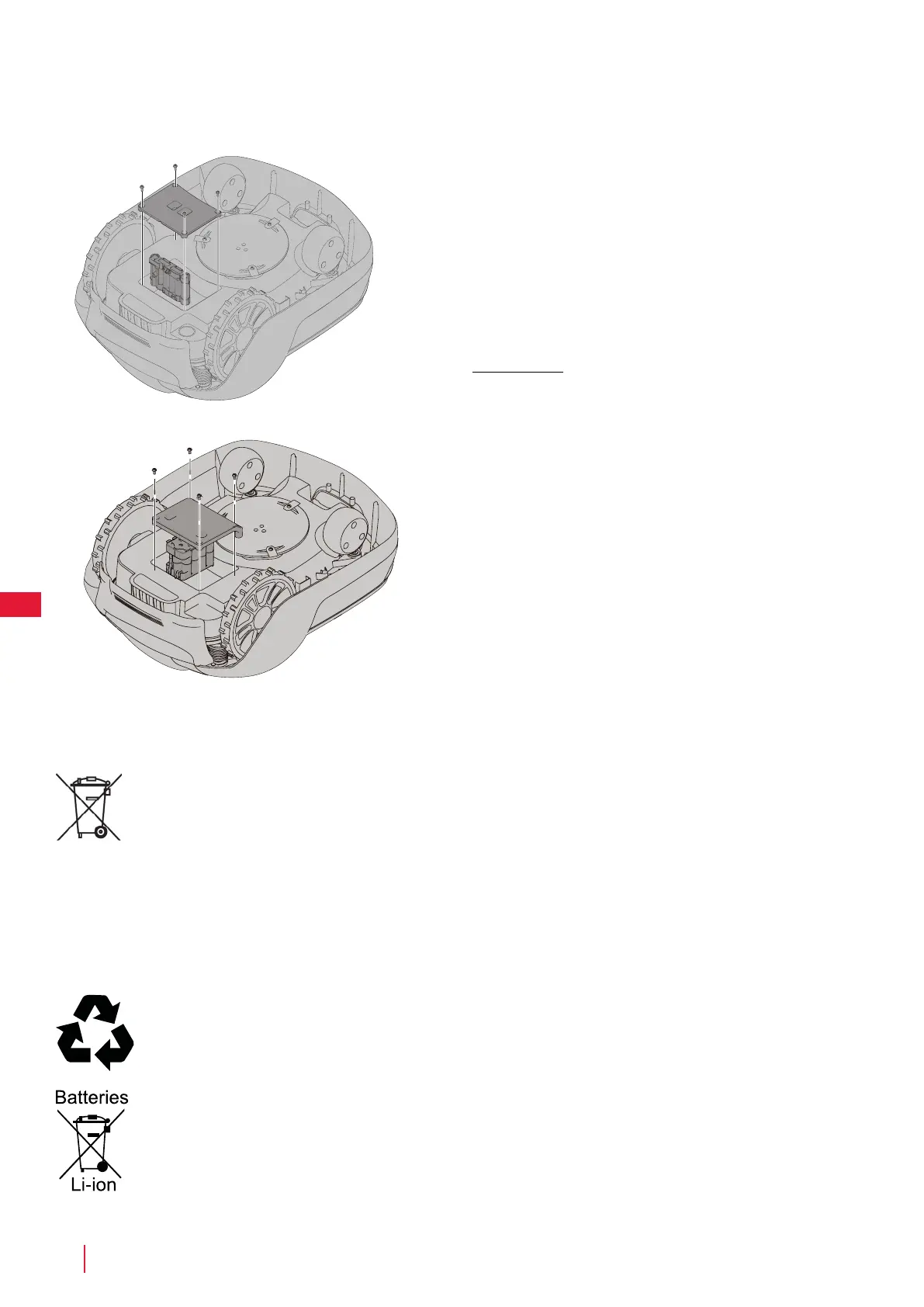 och för miljön. Dessa material ska lämnas till en anläggning som tar emot litiumjonbatterier.