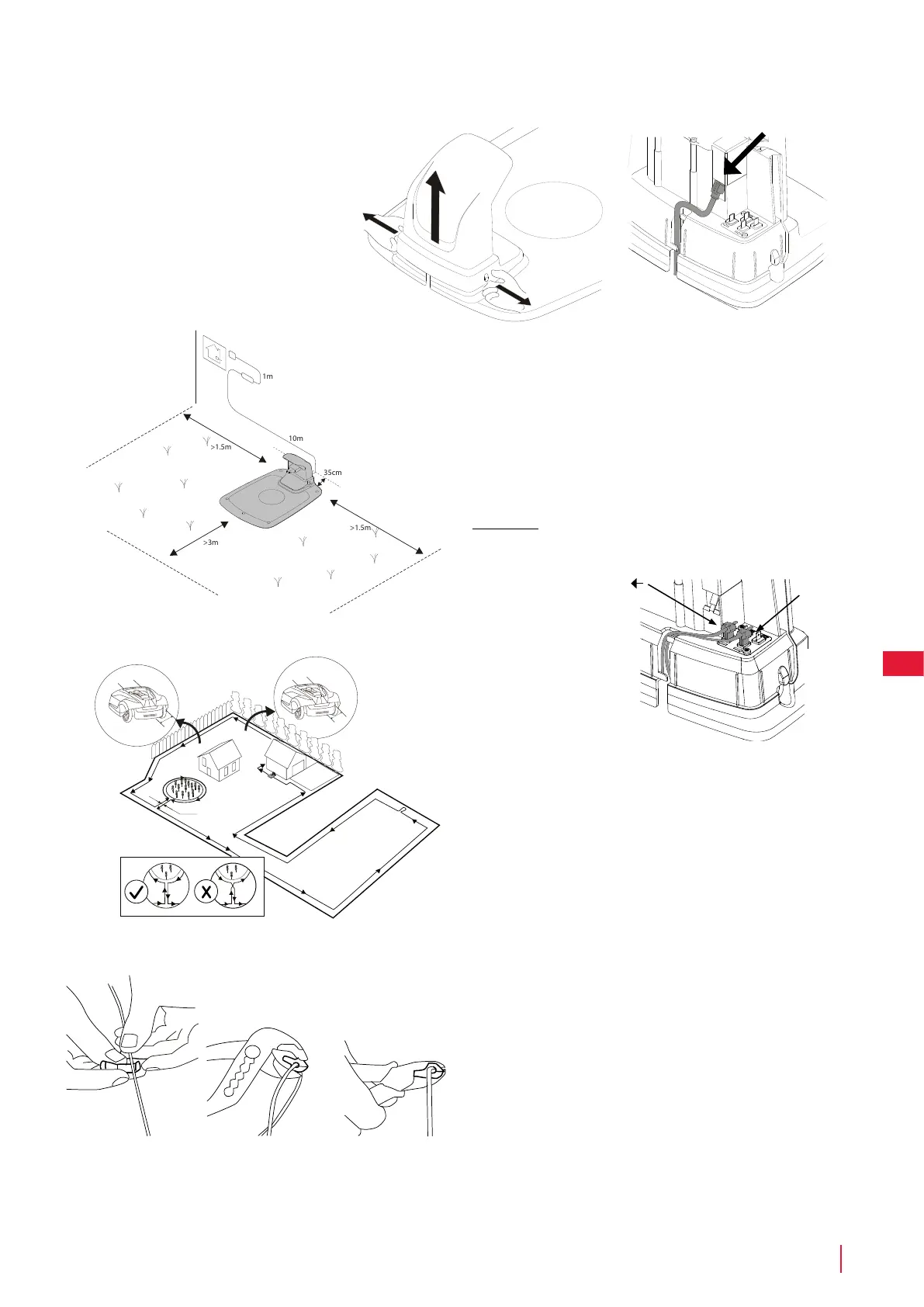 • Legg grensekabelen på bakken og fest den med plugger som står