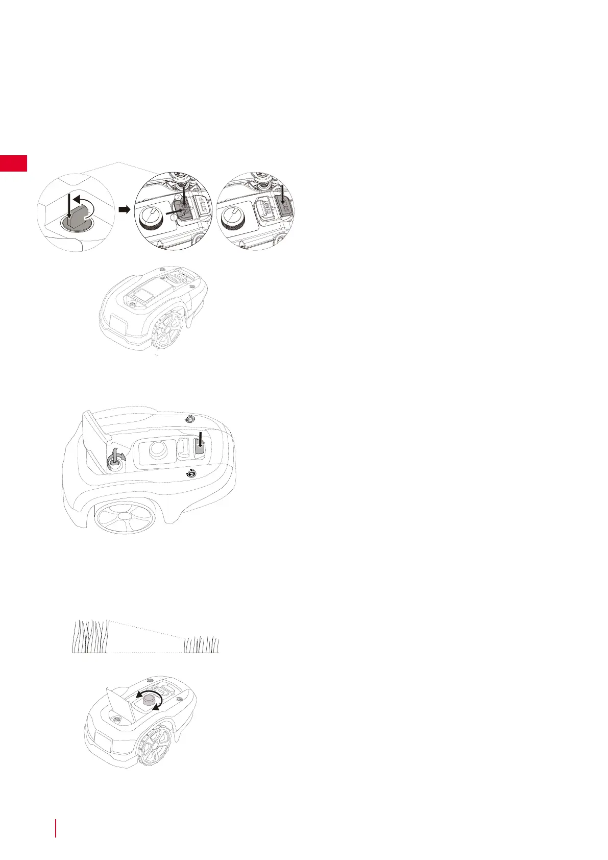 Girare in senso antiorario per diminuire l’altezza di taglio.