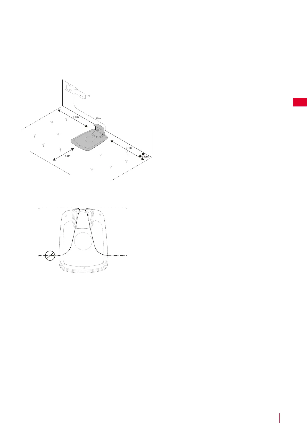 • Avec un dégagement d’au moins 3 m à l’avant et 1 m de chaque