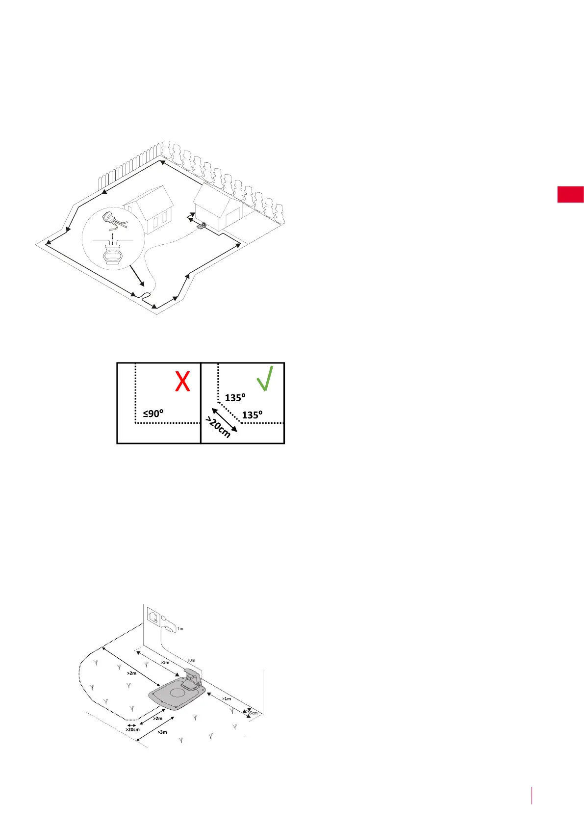 Ne pas posez le fil de guidage à moins de 30 cm du fil périphérique.