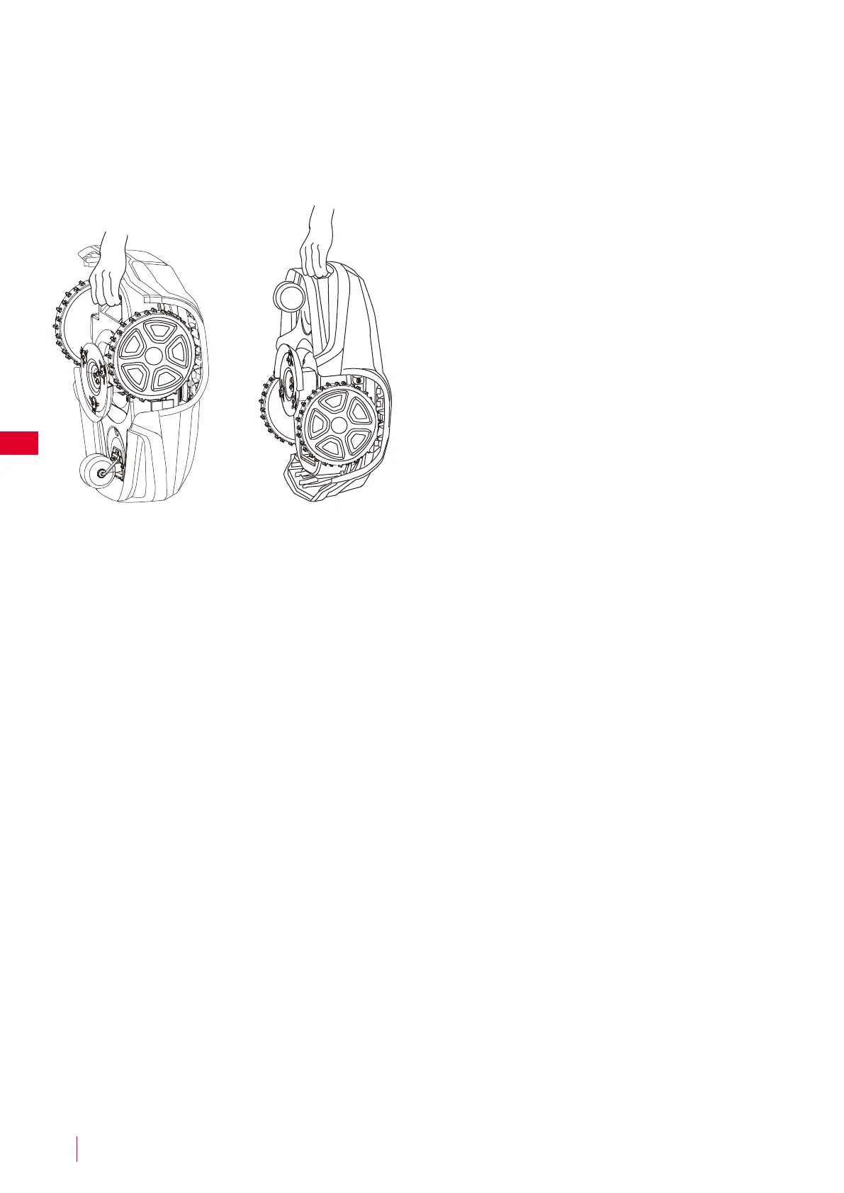 Необходимо всегда транспортировать газонокосилку за ручку.