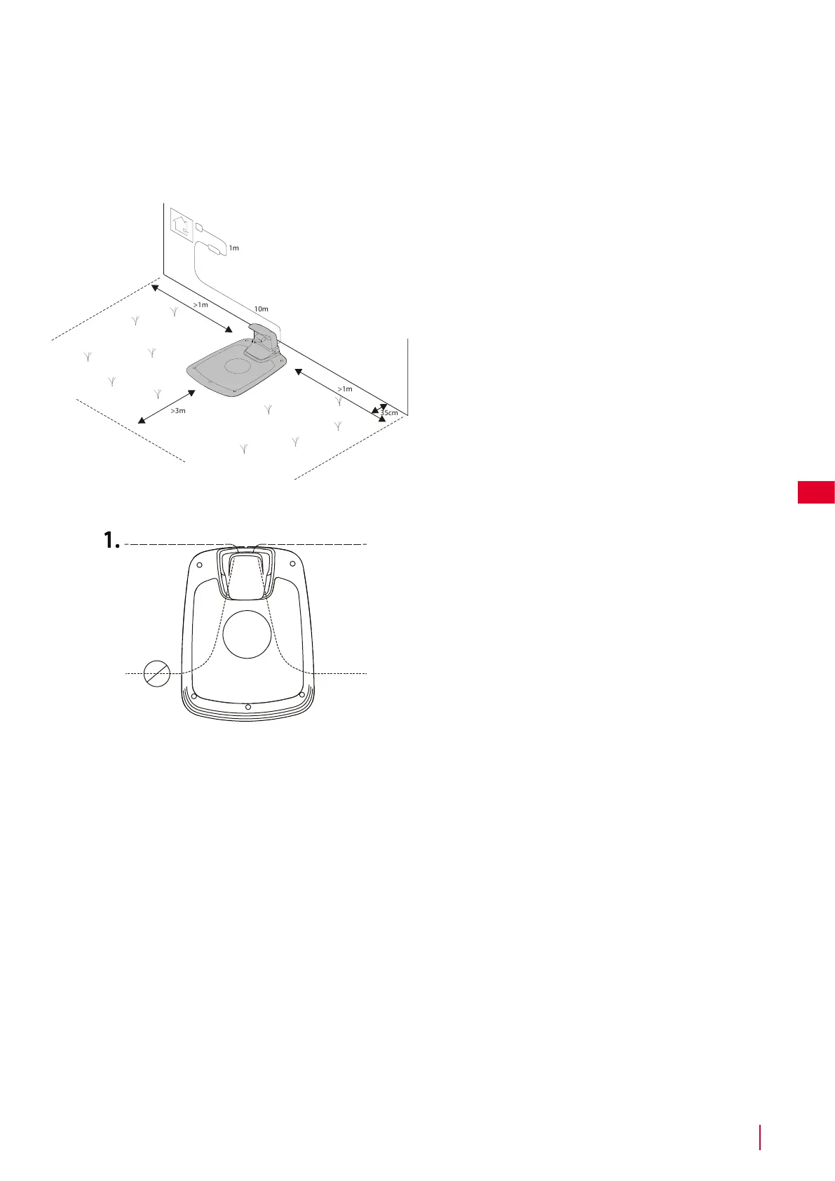 sivulle 1 m (älä sijoita latausasemaa työskentelyalueen ahtaisiin
