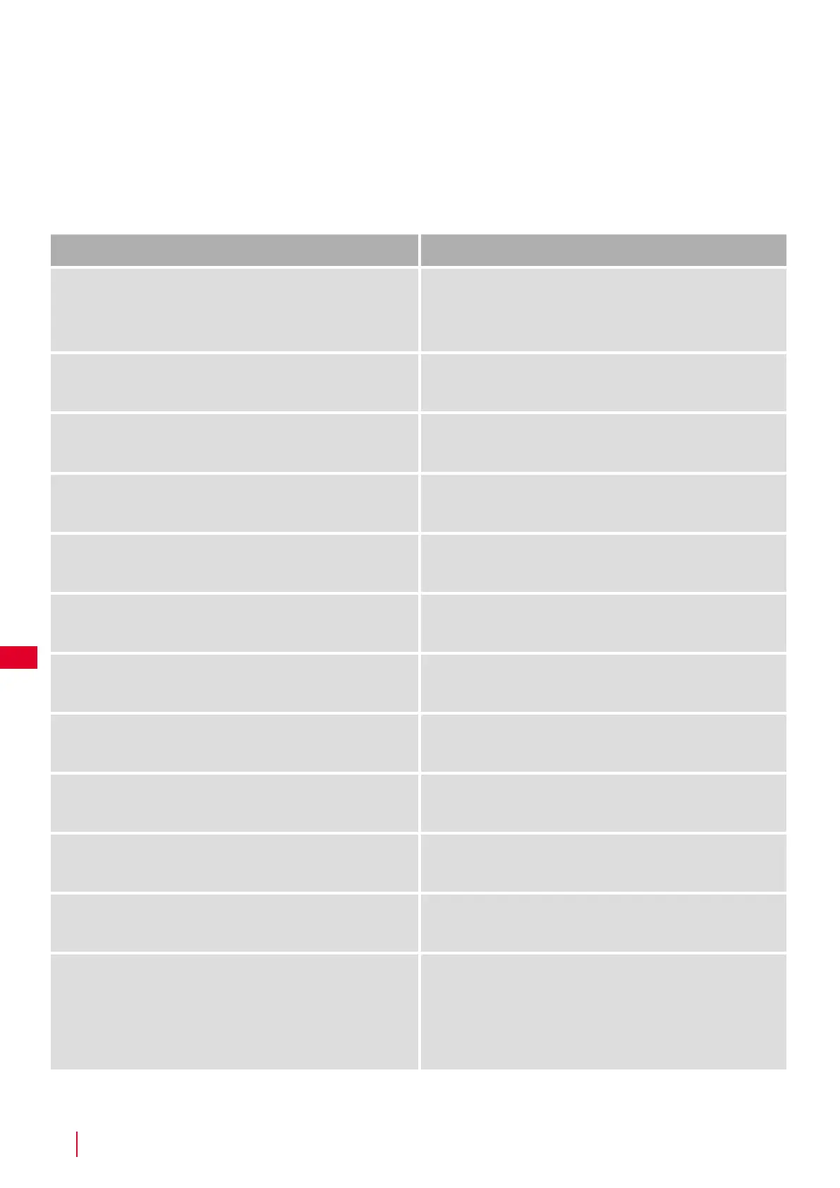 Når af afgrænsningskablet skal lægges, er der mange forhold at tage i betragtning som beskrevet i nedenstående tabel.