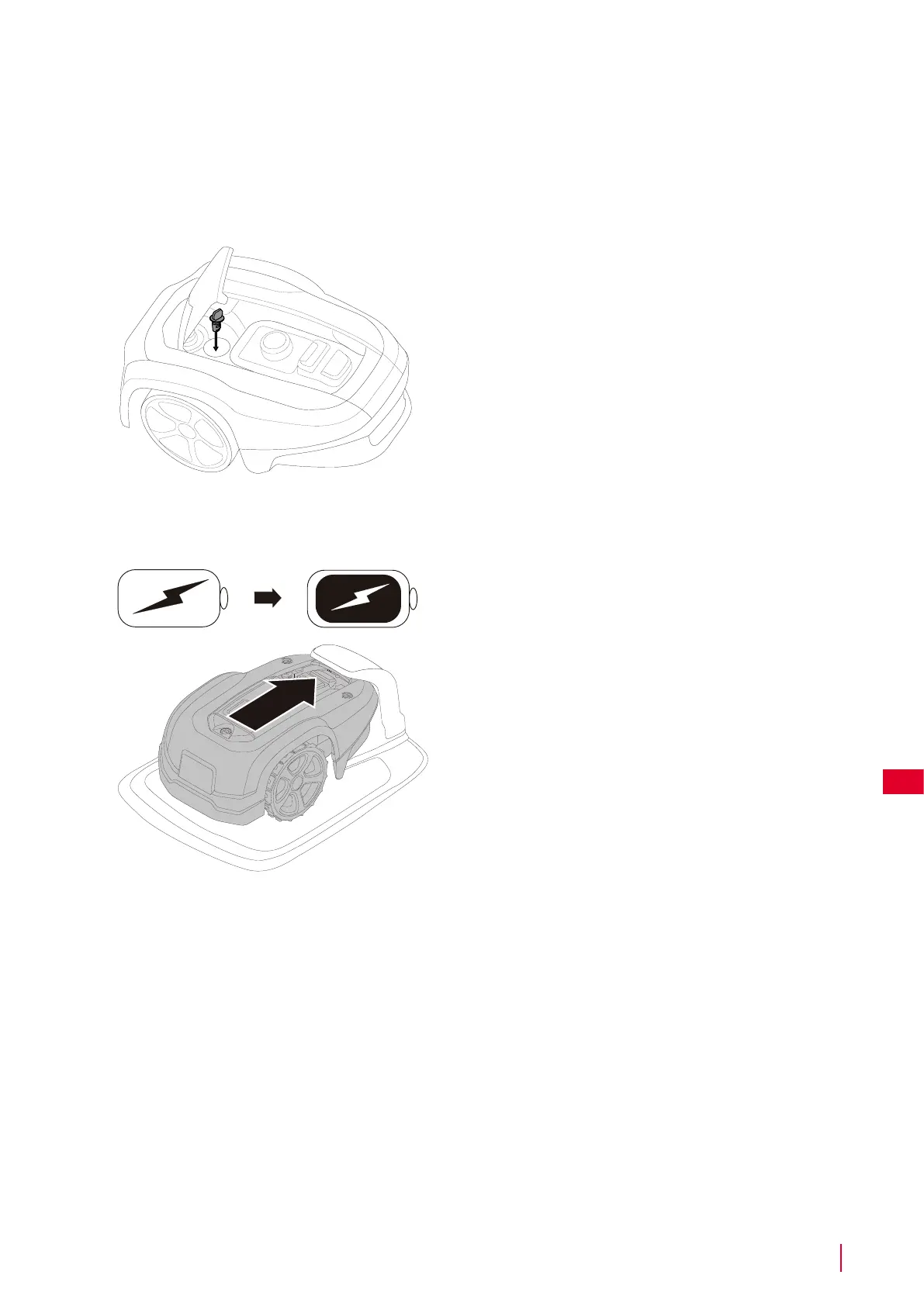 prowadzącego włożyć kosiarkę do stacji ładowania.