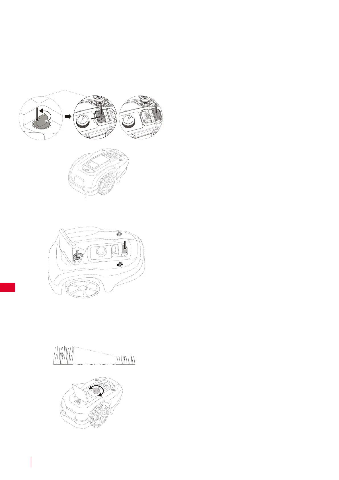 Wysokość koszenia można regulować w zakresie od 20 do 60 mm.