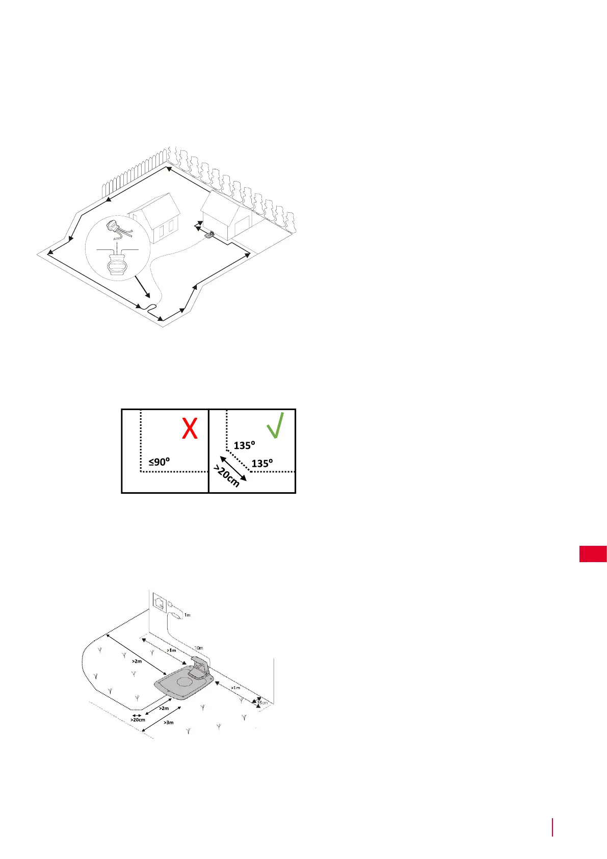 Neumisťujte vodicí drát blíže než 30 cm od ohraničujícího drátu.