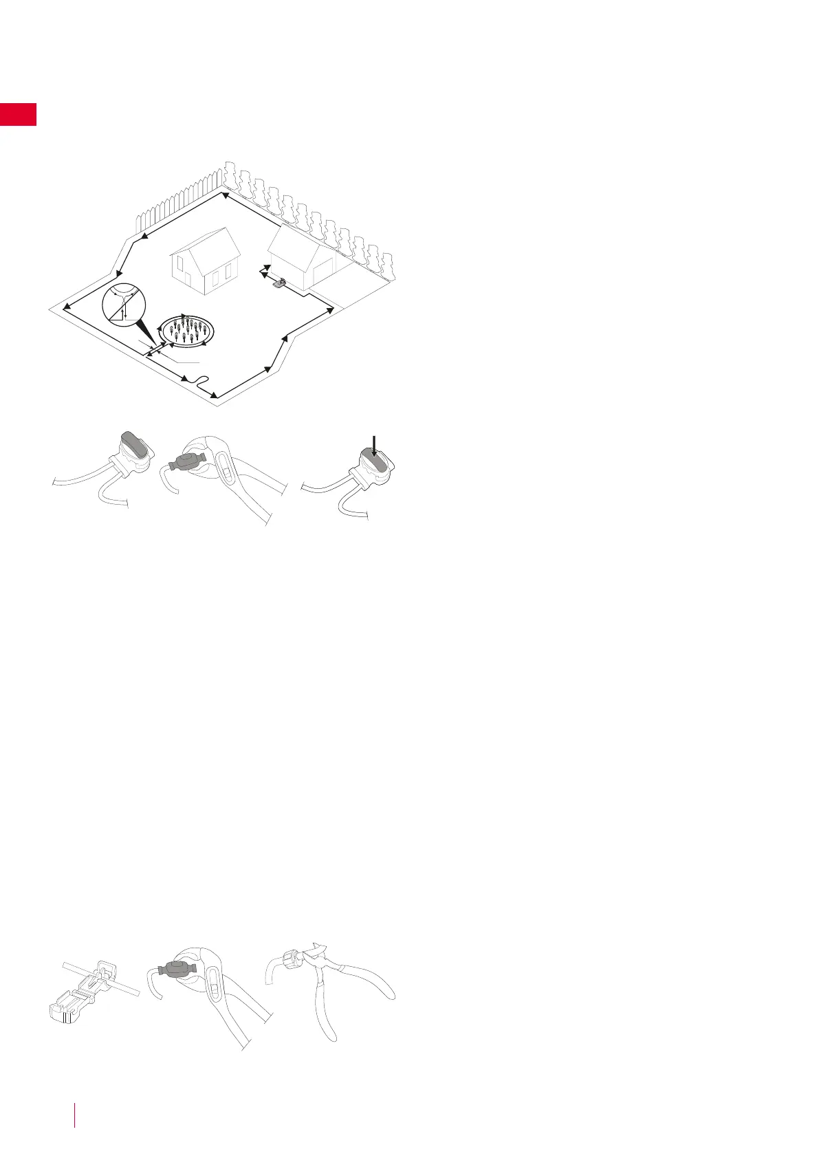 • Graben Sie den Begrenzungsdraht 1-20cm in den Boden ein.
