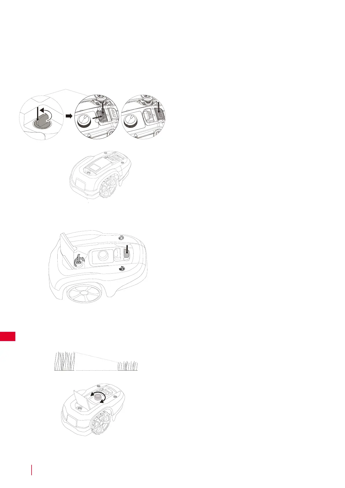 Otáčaním v smere hodinových ručičiek zvyšujete výšku kosenia.
