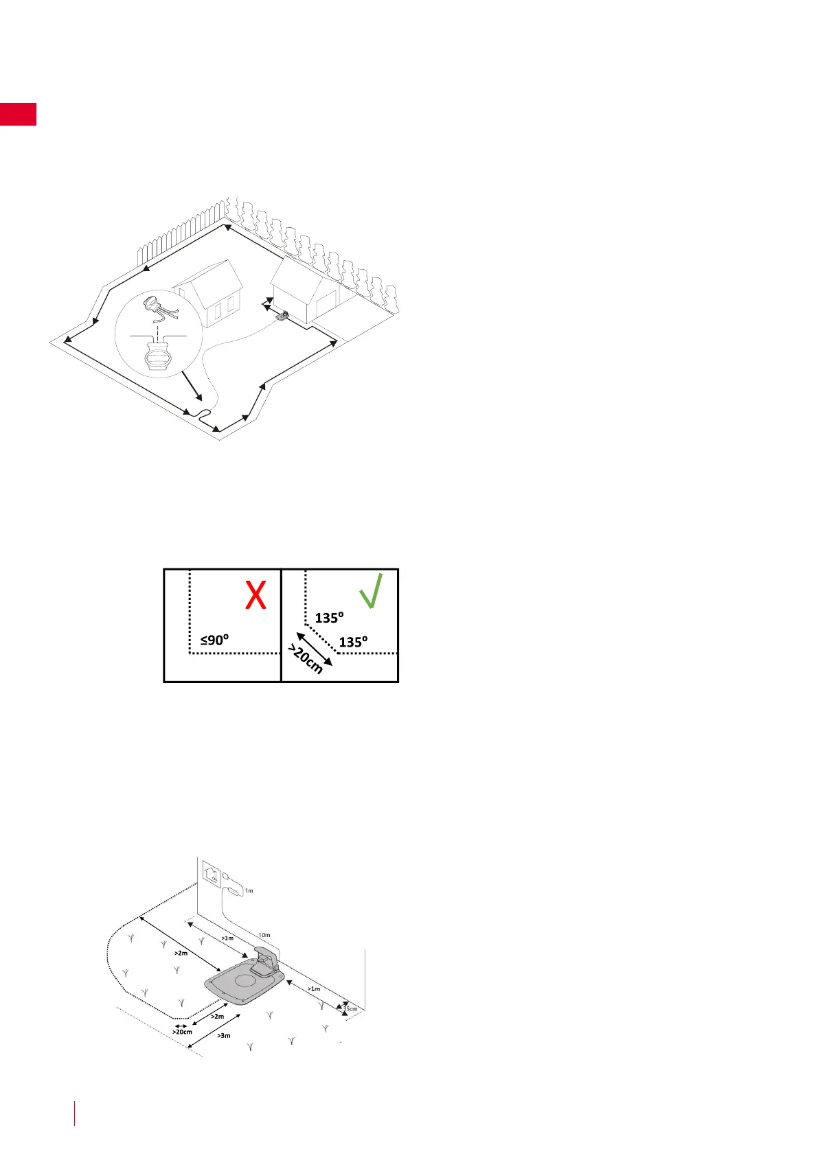Legen Sie den Führungsdraht nicht spitzwinklig aus, da der Mäher sonst