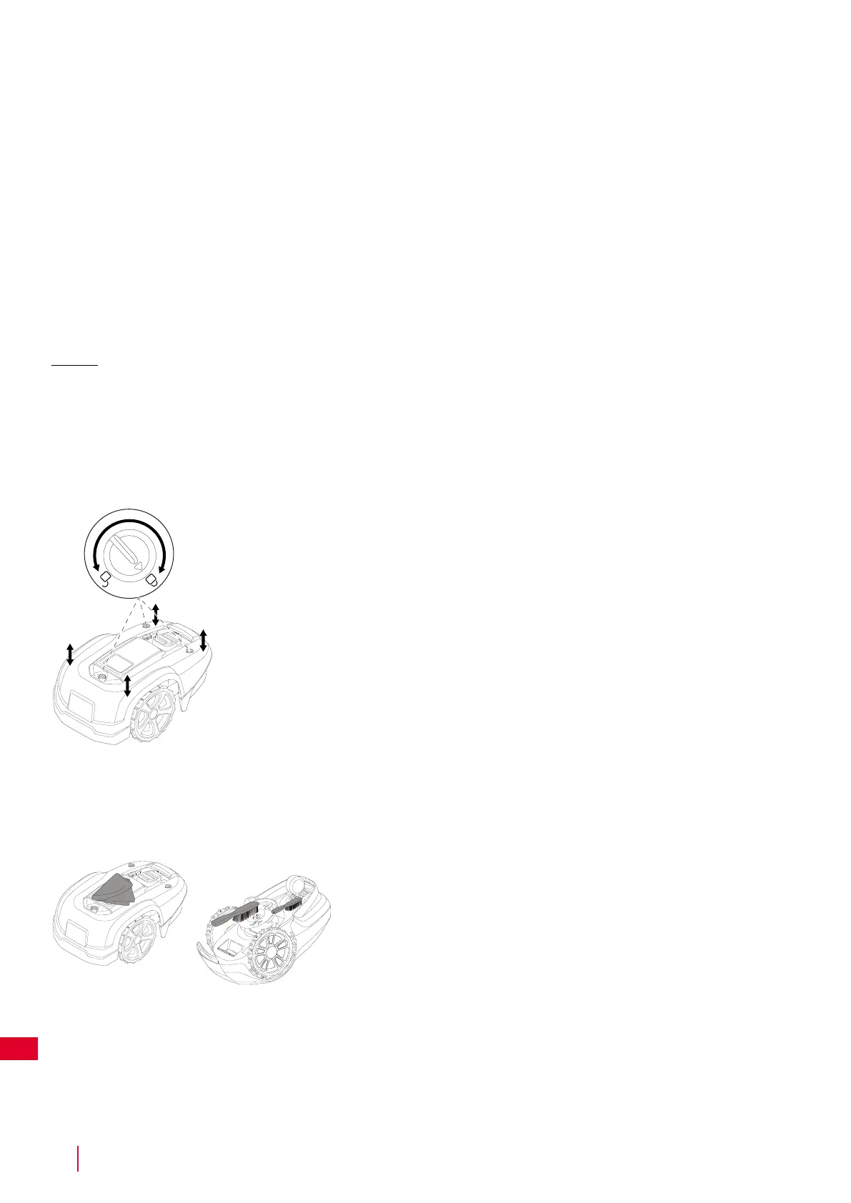 • Inspectaţi vizual periodic robotul de tuns iarbă și înlocuiţi piesele uzate sau defecte pentru siguranţă.