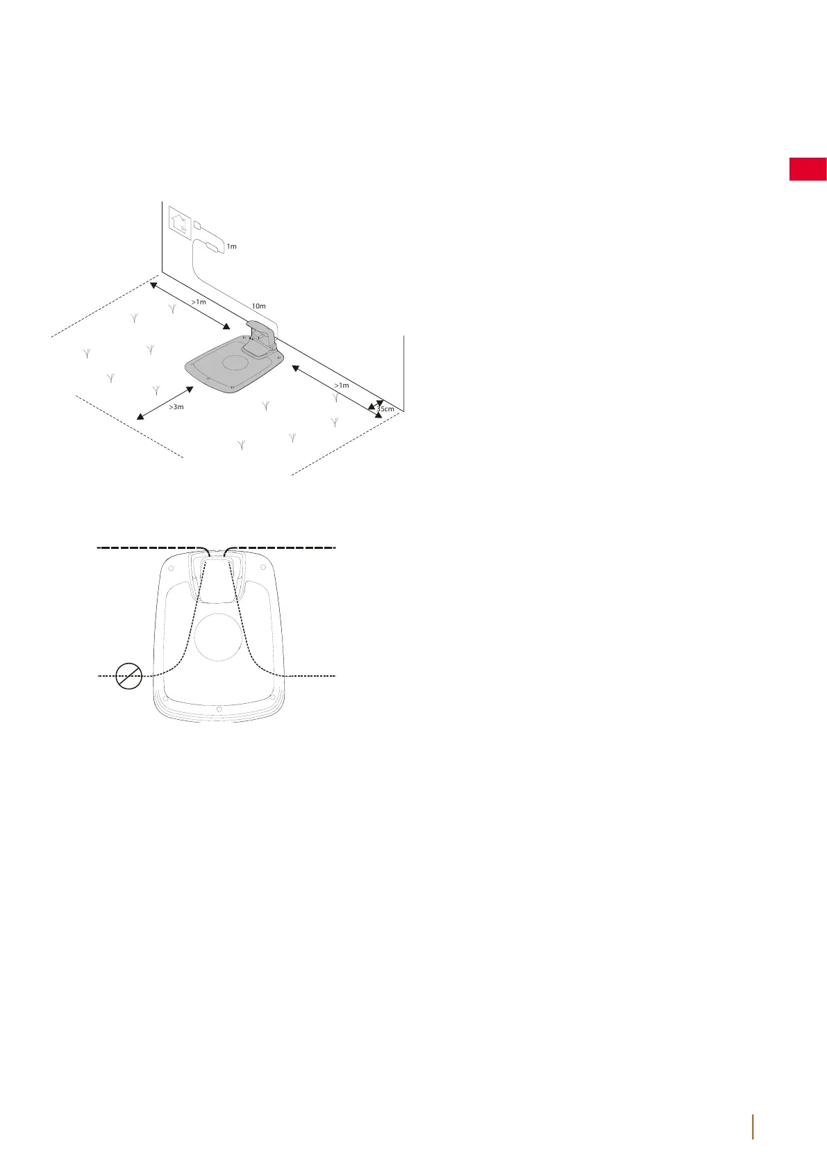 (El extremo delantero de la estación de carga no debe estar 5 cm