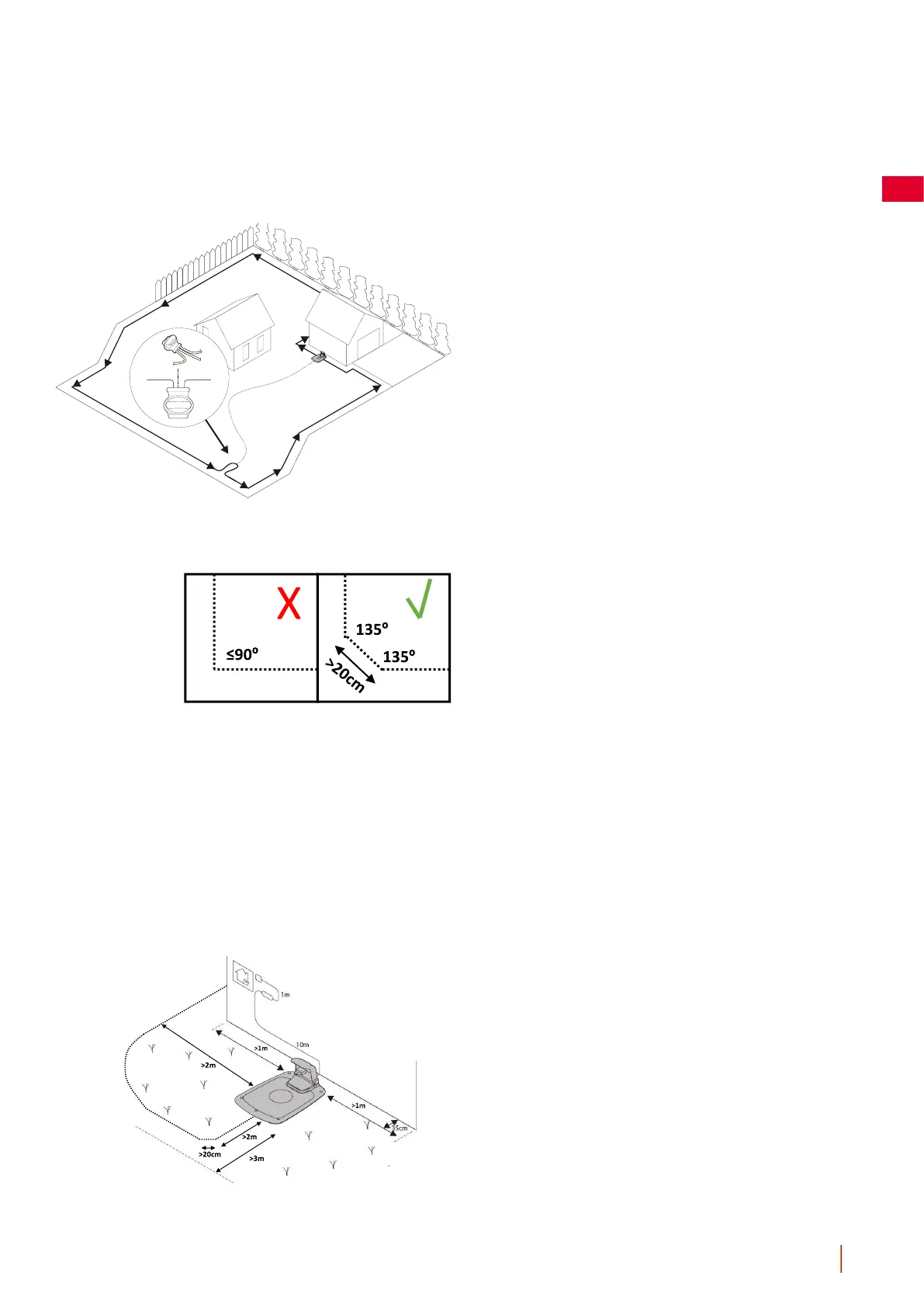 No coloque el cable de guía más cerca de 30 cm del cable delimitador.