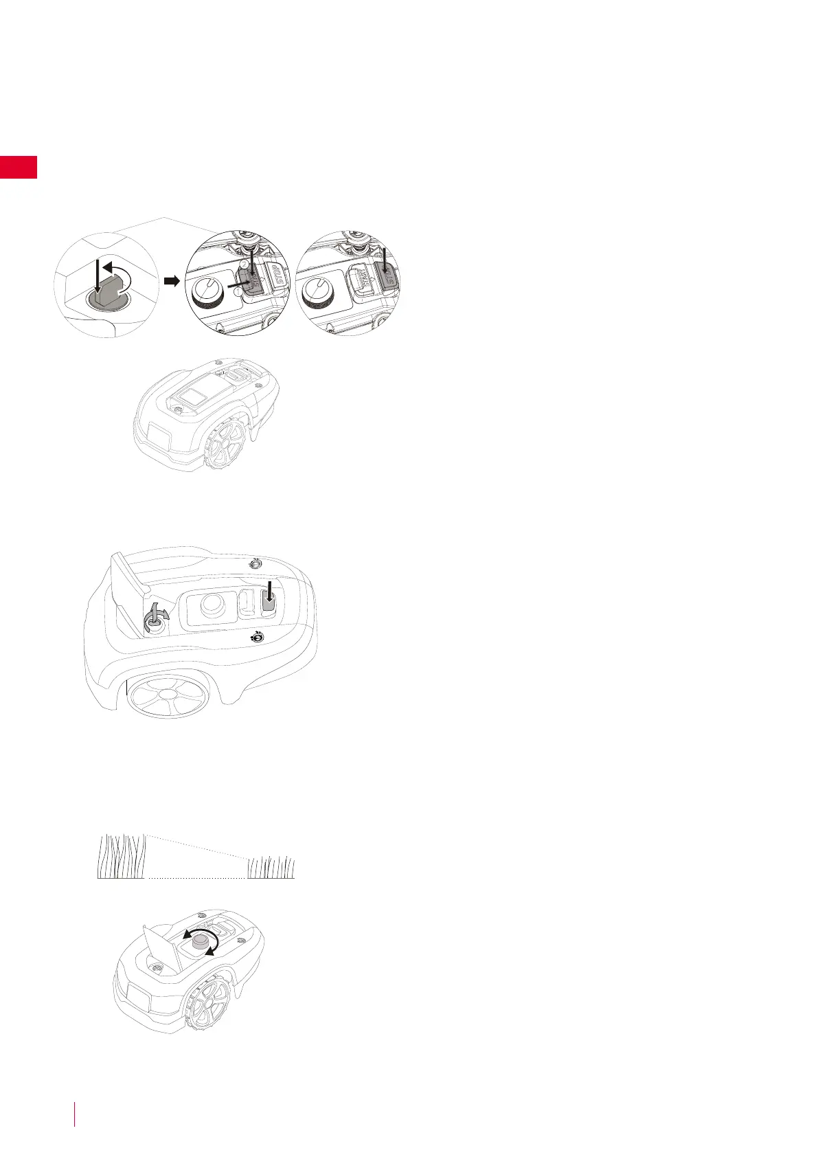 Gire el mando de ajuste de altura de corte al ajuste deseado. El ajuste