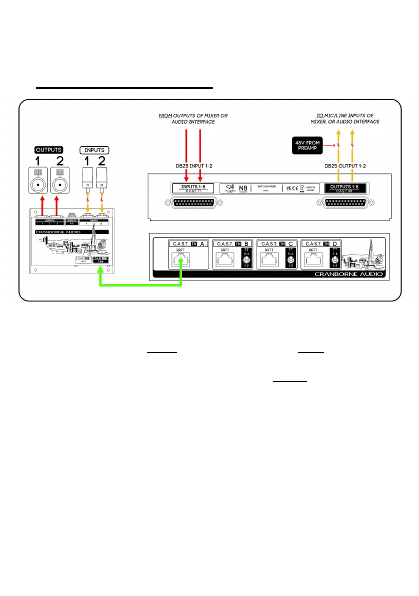 DB25 Input Connector [3], through the same C.A.S.T. cable, and to outputs 1/2 of the