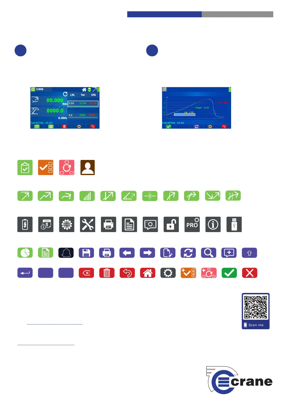 The following is a guide to the various funcon key icons that will appear throughout the TorqueStar Plus & Pro model screens.