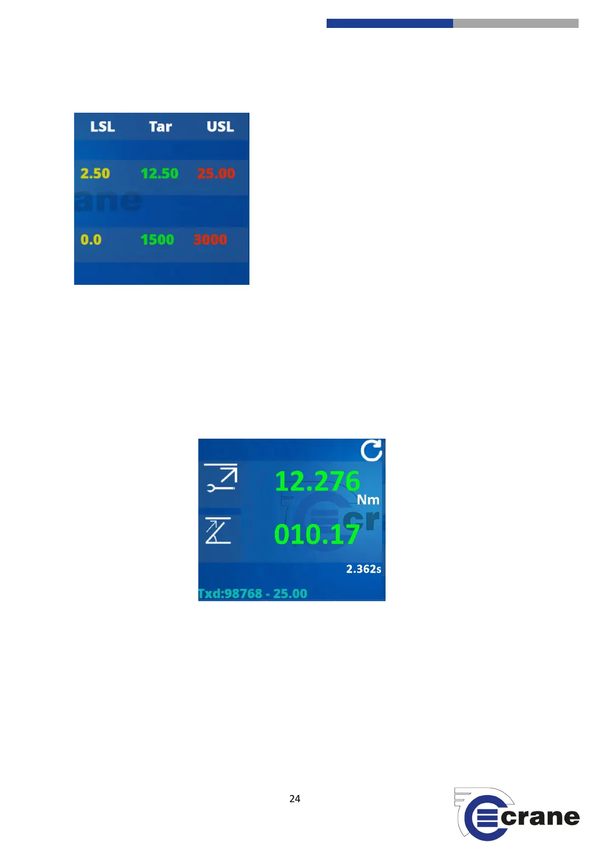 If the USL is reached then the fixing is too tight the torque reading will be in red and three audible beeps will