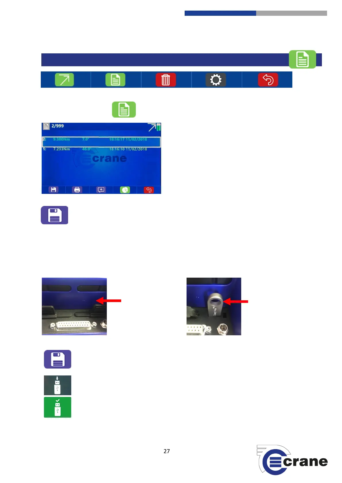 When clicking on the Save Icon, you will be asked to insert a USB Stick. The USB Icon will