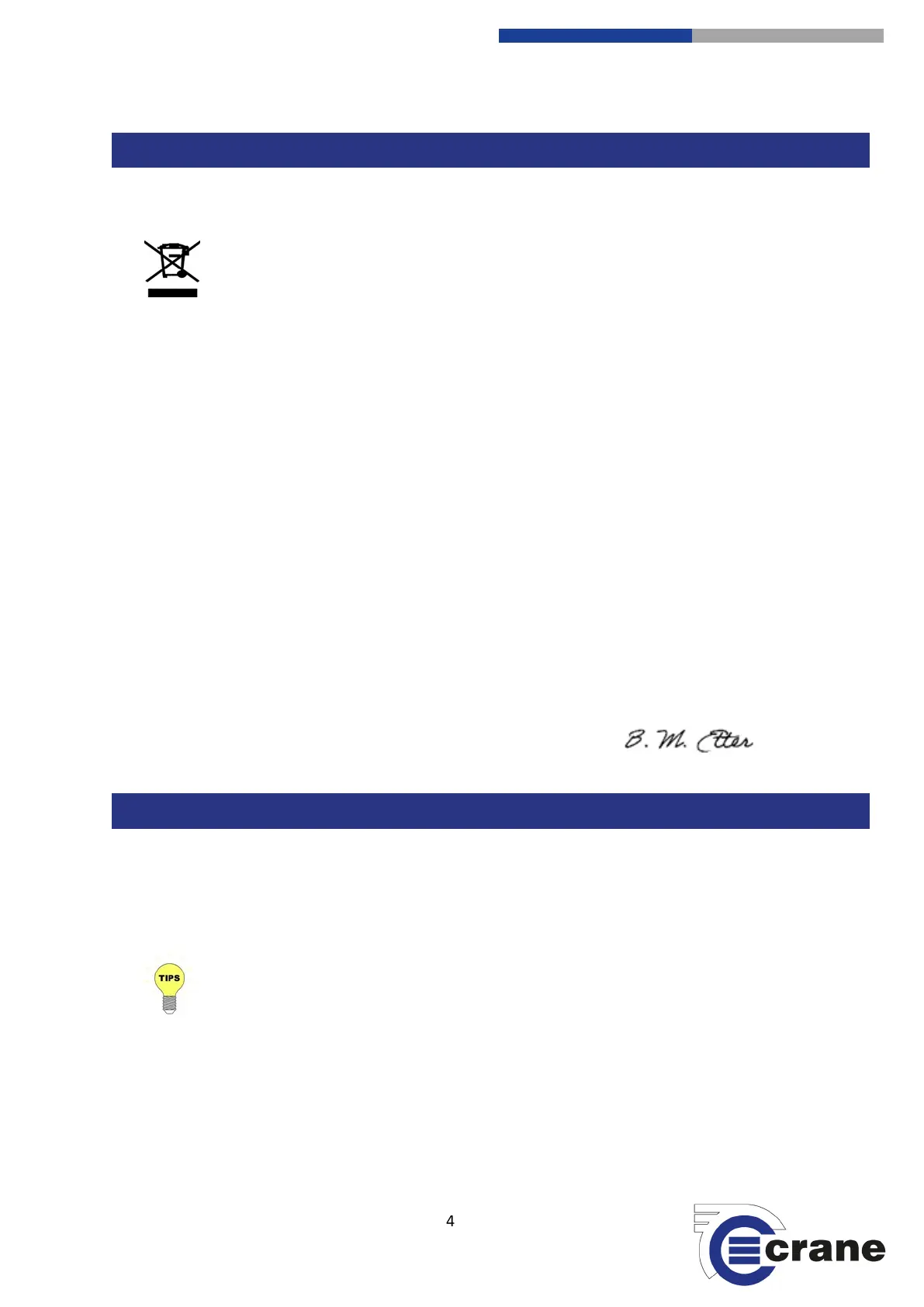 To enable this product to be disposed of properly i.e. cradle to grave, Crane Electronics is willing to accept the