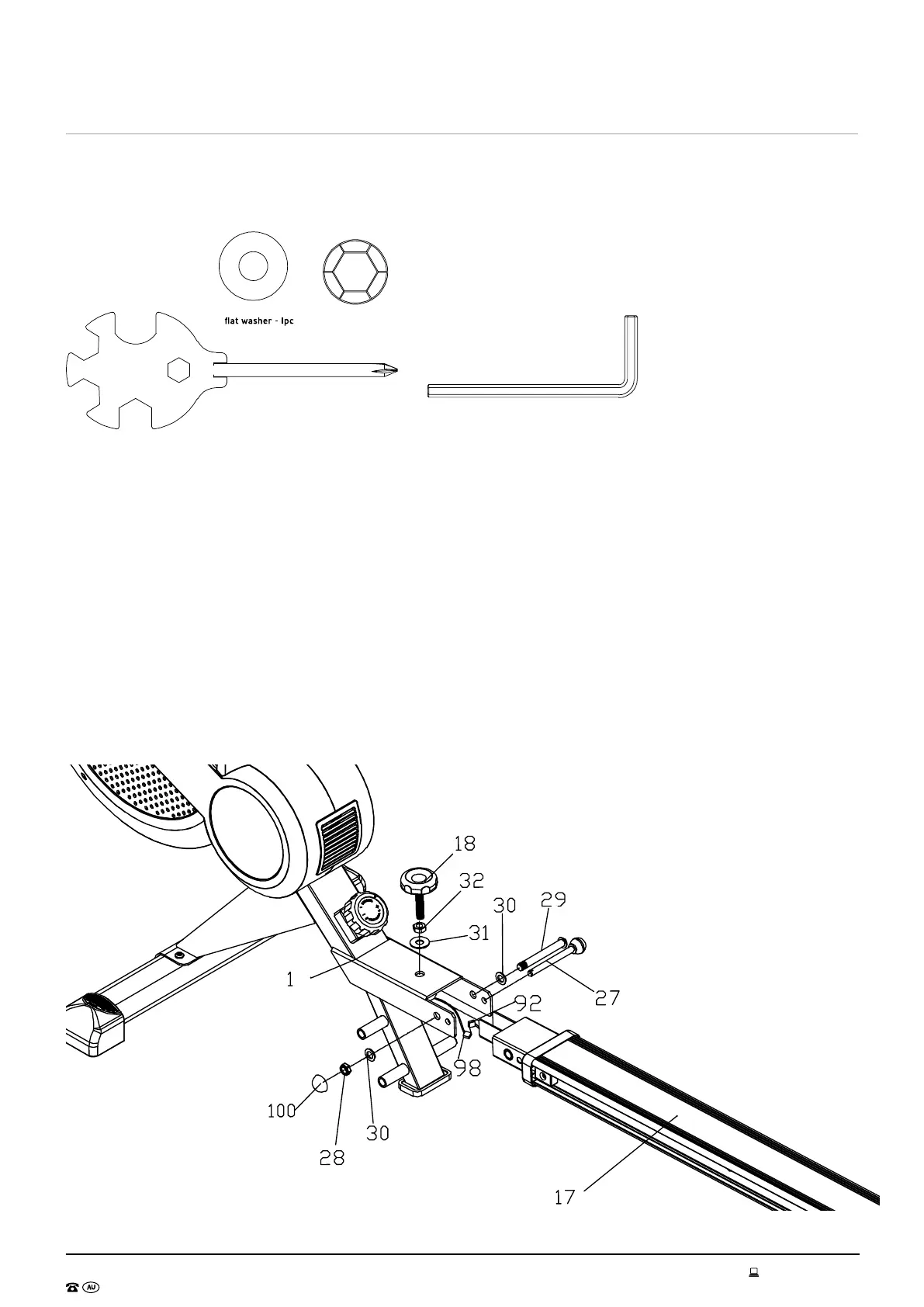 Attach the Sliding rail (17) to the Main frame (1). Connect the Sensor wire(92) with console wire (98).