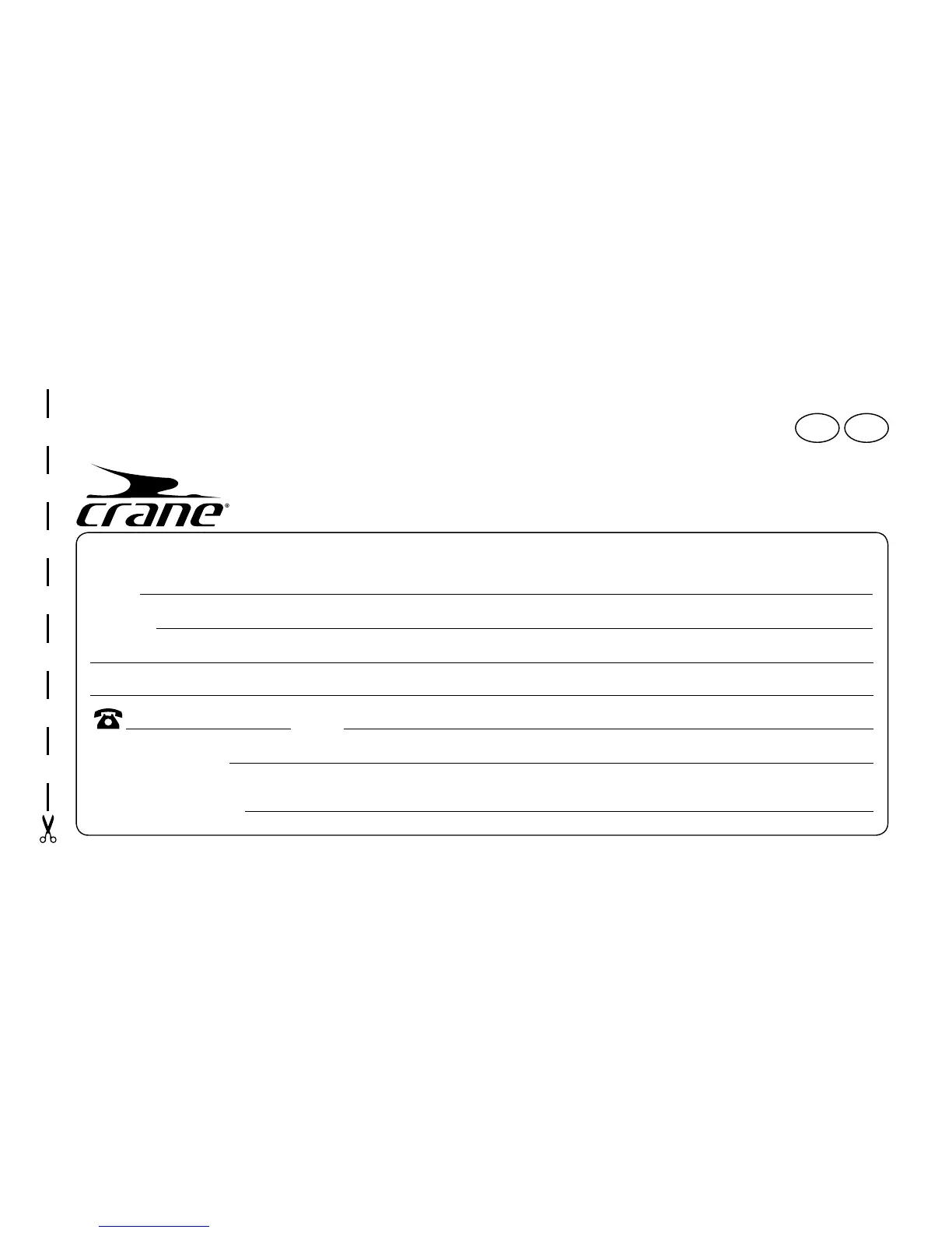 Crane AE5-CDSM-3A - Warranty Card