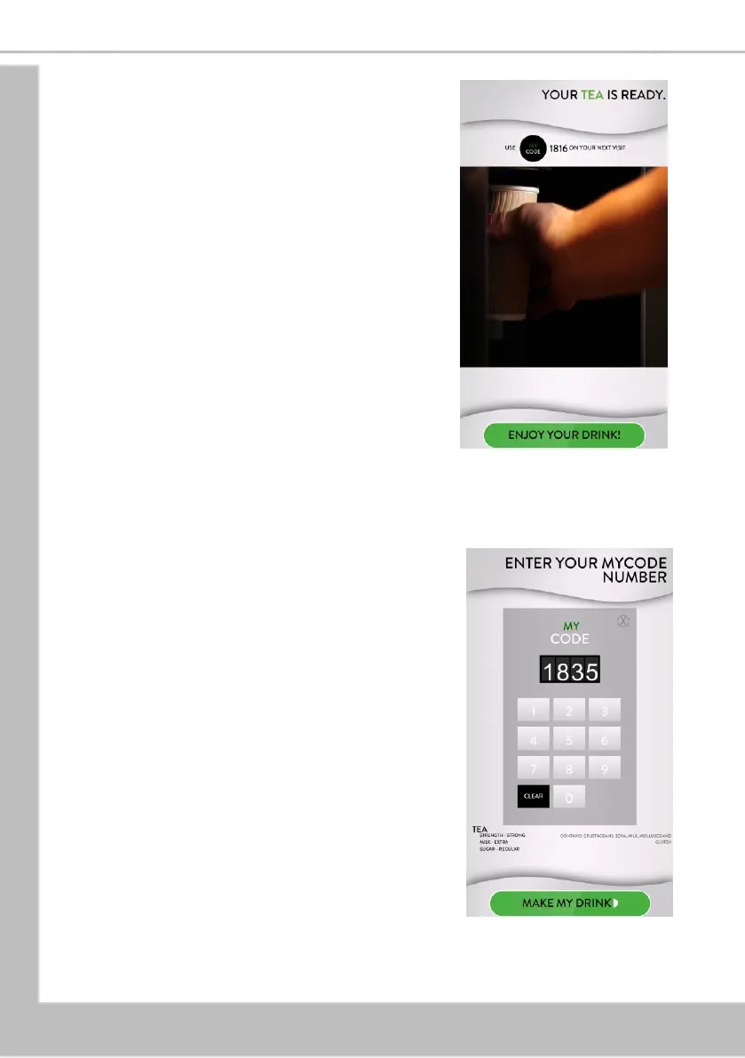 Add your code number and touch Make my drink to