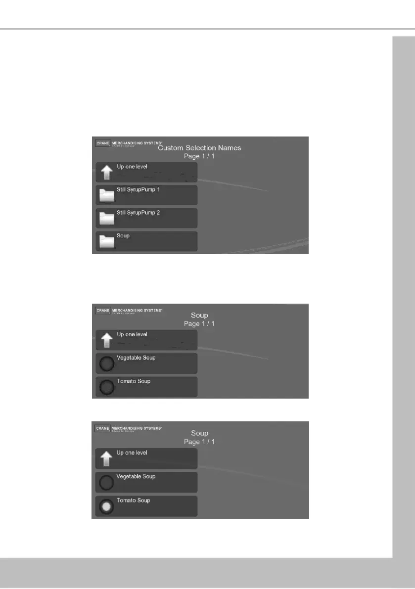 This menu allows the operator to change the type of soup or flavour of cold drink displayed to