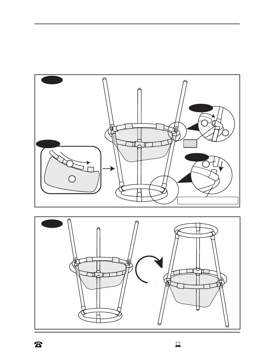 4. Introduzca los postes grandes (#3) en los aros de la cesta de malla (#10);