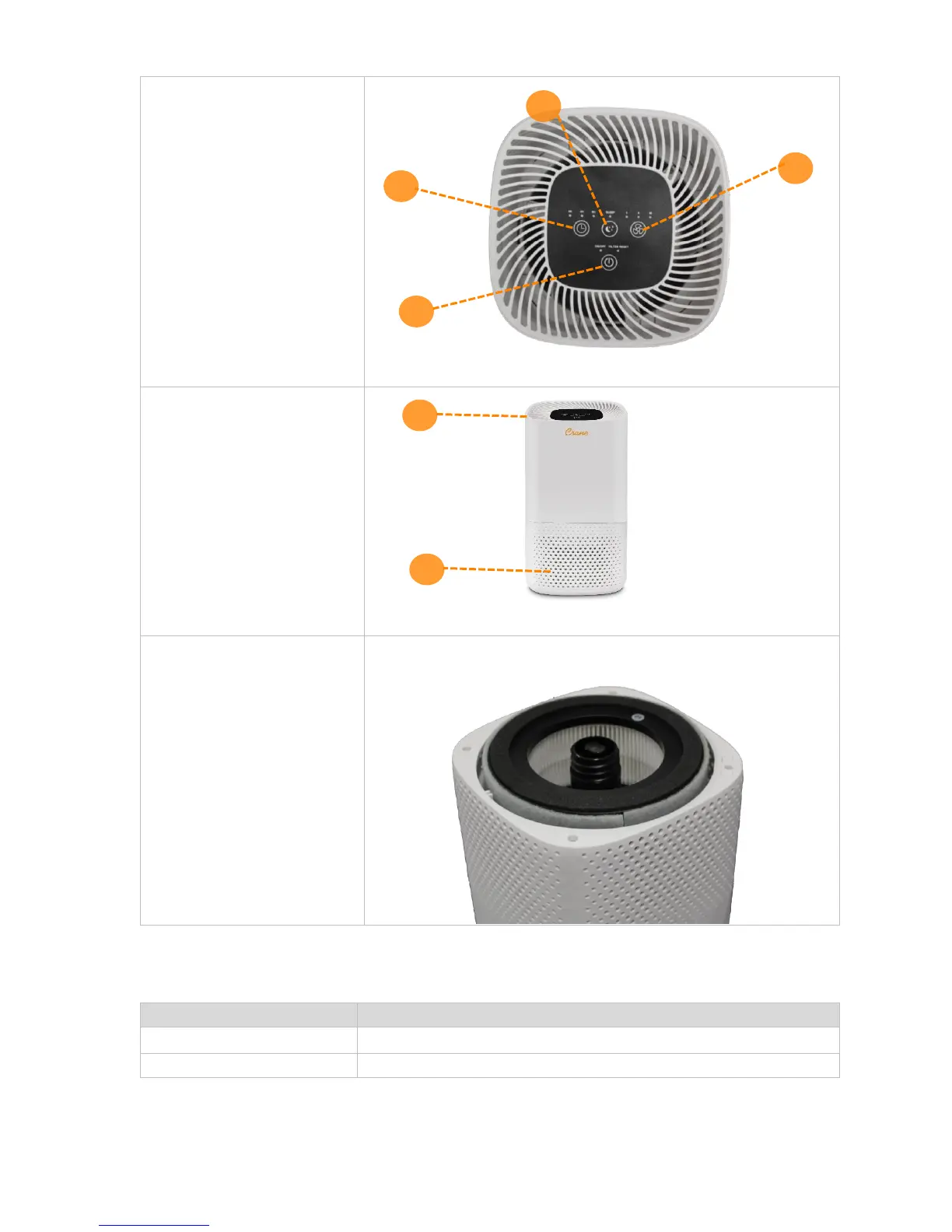 Crane EE-5067 - List of Main Parts; Control Panel Components; Air Purifier Unit Components; Filter Components