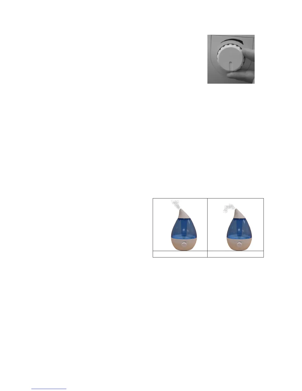 moisture output, turning the knob counterclockwise will
