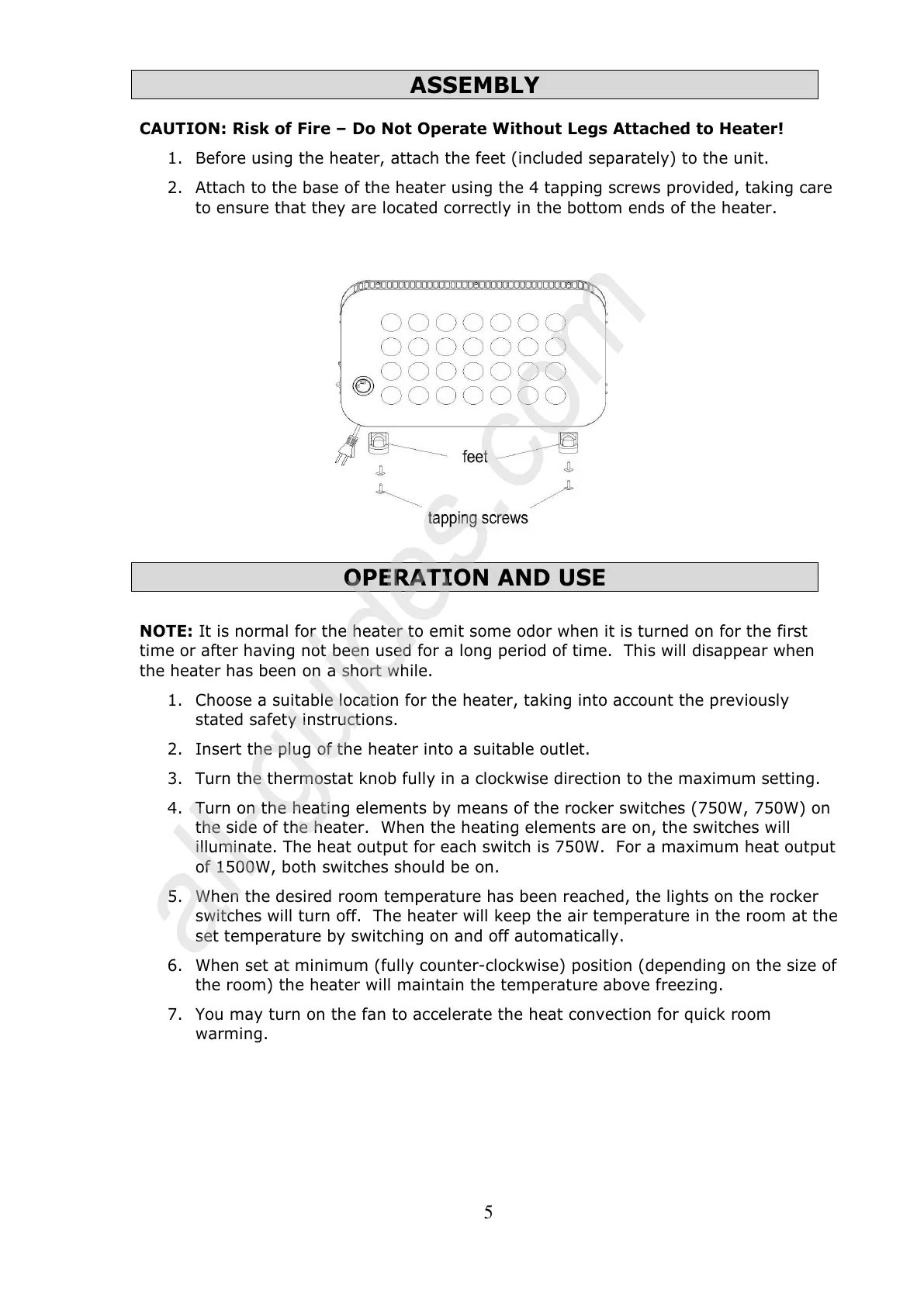 NOTE: It is normal for the heater to emit some odor when it is turned on for the first