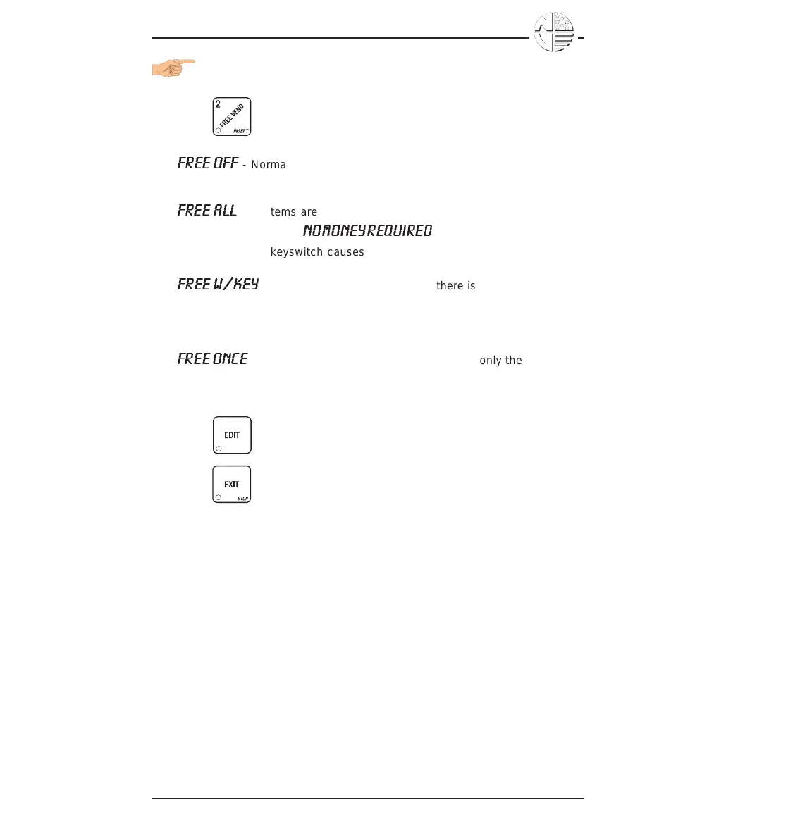 to be freevended. Coin mechanism errors are ignored. this state is