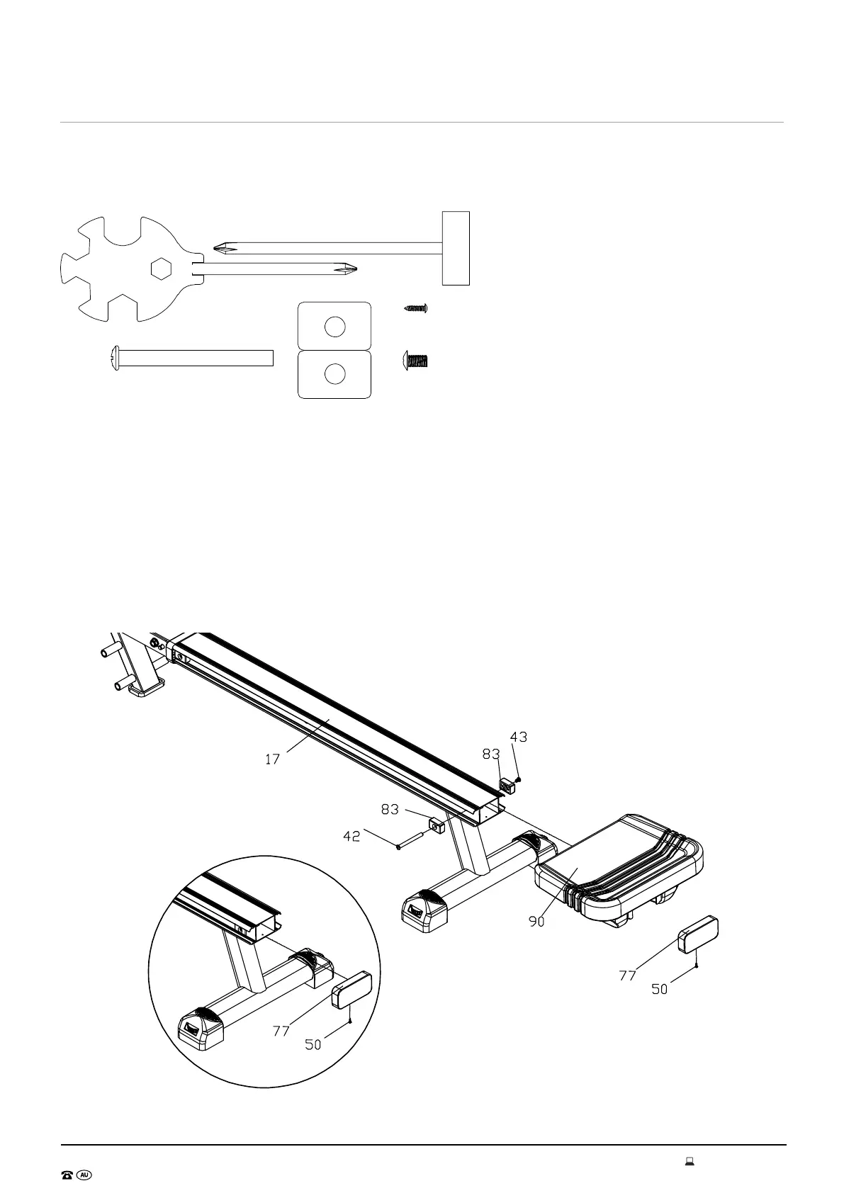 NOTE: The Sliding rail end cap (77) is placed in a seperate PE bag. Please identify this part out of box