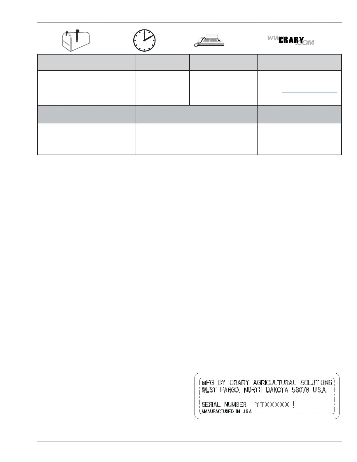 are to be made without the written permission of Crary Agricultural Solutions. Part replacements should be with original